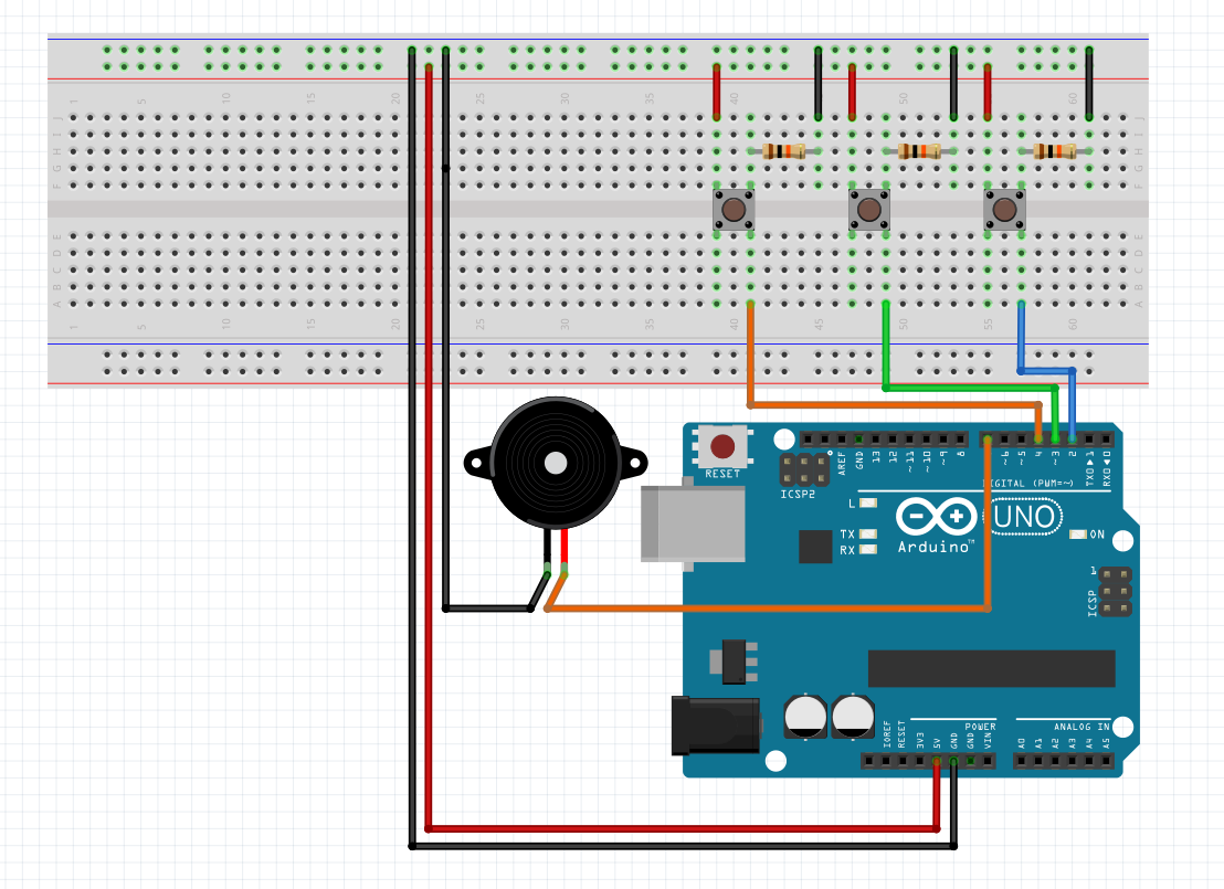 - 피에조 스피커의 주파수를 제어하기 위한 Push buttion이 3개 있으며 순서대로 디지털 입력 4,3,2에 연결됨