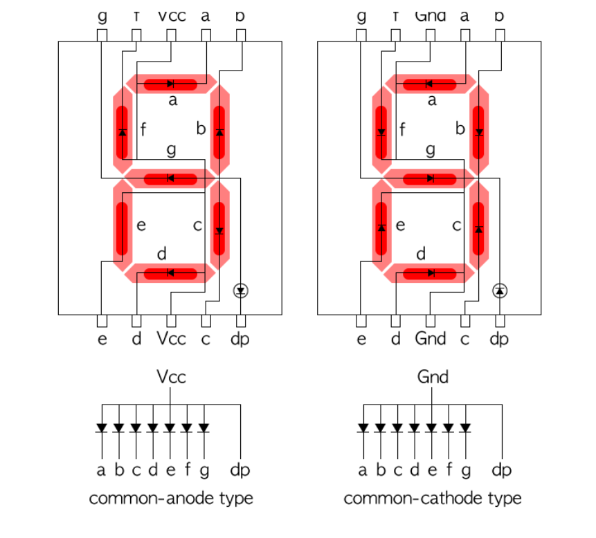 - 7세그먼트는 8개의 LED를 연결하는 것과 동일함