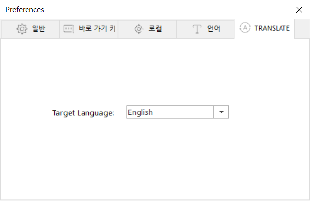 TRANSLATE 에서는 번역될 언어를 선택하면 된다.
