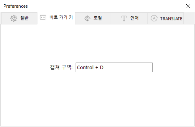 바로가기 키에서 자신이 사용하기 편리한 키를 입력하면 변경이 가능하다. 바로가기 키를 눌러서 이미지 캡쳐가 가능하다. 본인은 Control + D 키를 사용하기로 했다.