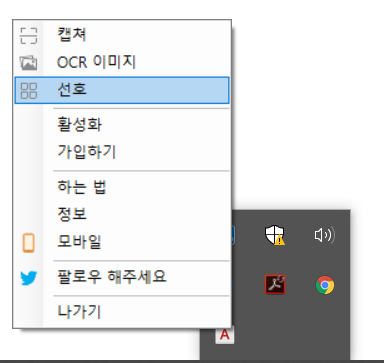 프로그램을 실행하면 윈도우 화면 오른쪽 아래 Tray Icon이 생성된다.