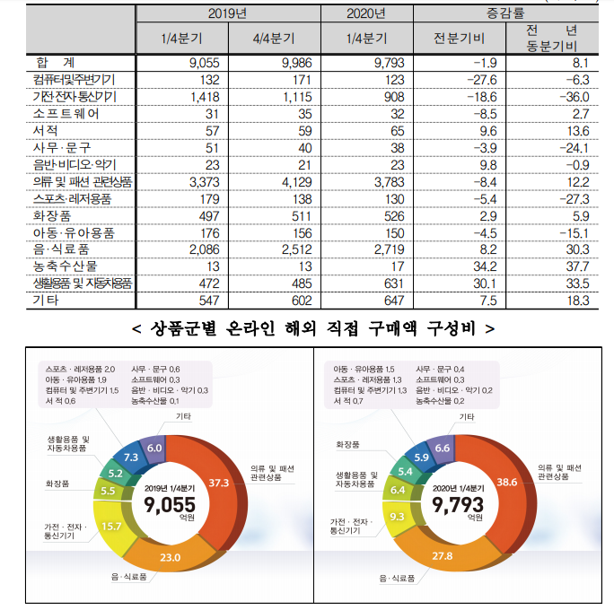 통계청에서 온라인쇼핑 동향 및 1/4분기 온라인 해외 직접 판매 및 구매 동향을 알 수 있음