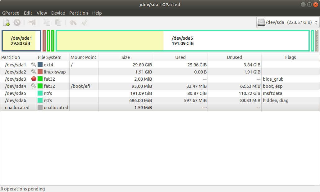 그래서 윈도우 용량중 일부를 사용하지 않는 용량으로 설정해 놓았다고 할 경우 리눅스에서 파티션을 어떻게 늘려서 사용할 수 있는지 팁을 공유하고자 한다.