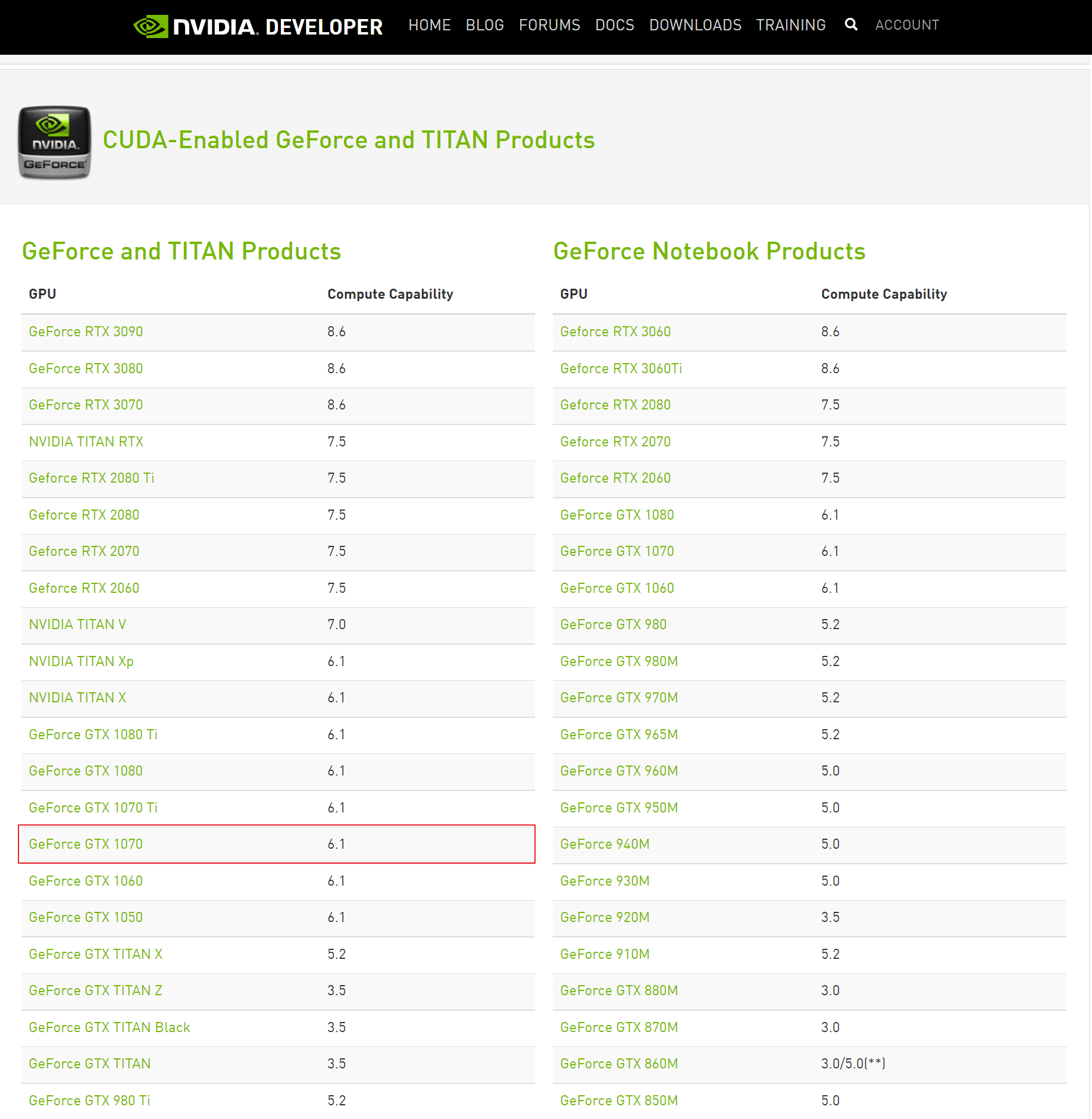 GPU의 Compute Capability는 아래에서 확인할 수 있다.