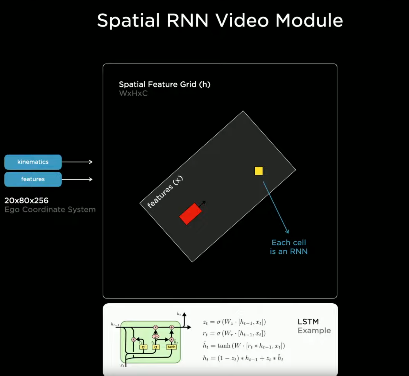 구조적 문제 때문에 2차원 표면에서 주행을 하고 보이지 않는 부분의 상황을 격자위에 체계화합니다. 주행을 하다가 차량 주변에 보이기 시작하는 부분만 업데이트 합니다. 차가 주행할 때에는 차량위치와 숨겨진 특징들을 통합하기 위해 kinematics 정보를 이용합니다. 차량 가까운 곳이 보이기 시작할 때에만 RNN을 업데이트해줍니다.