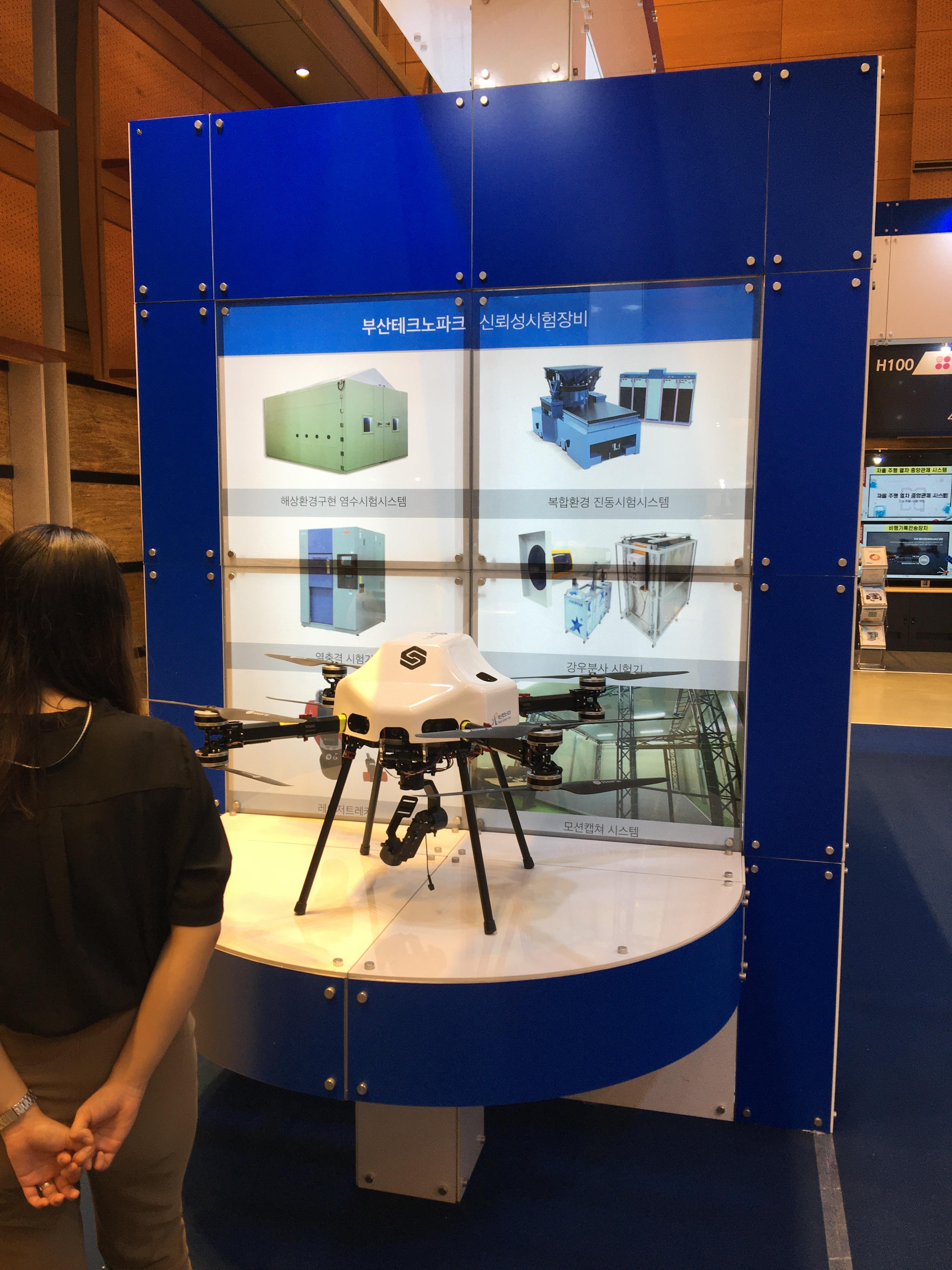 좀 흔들리기는 했지만 전시회중 몇몇 회사에서 추력시험장치를 선보였더군요. 이제는 드론을 단순히 조립하고 비행하는 것을 넘어 소재개발 및 국산화에 관심이 많은 것 같습니다.