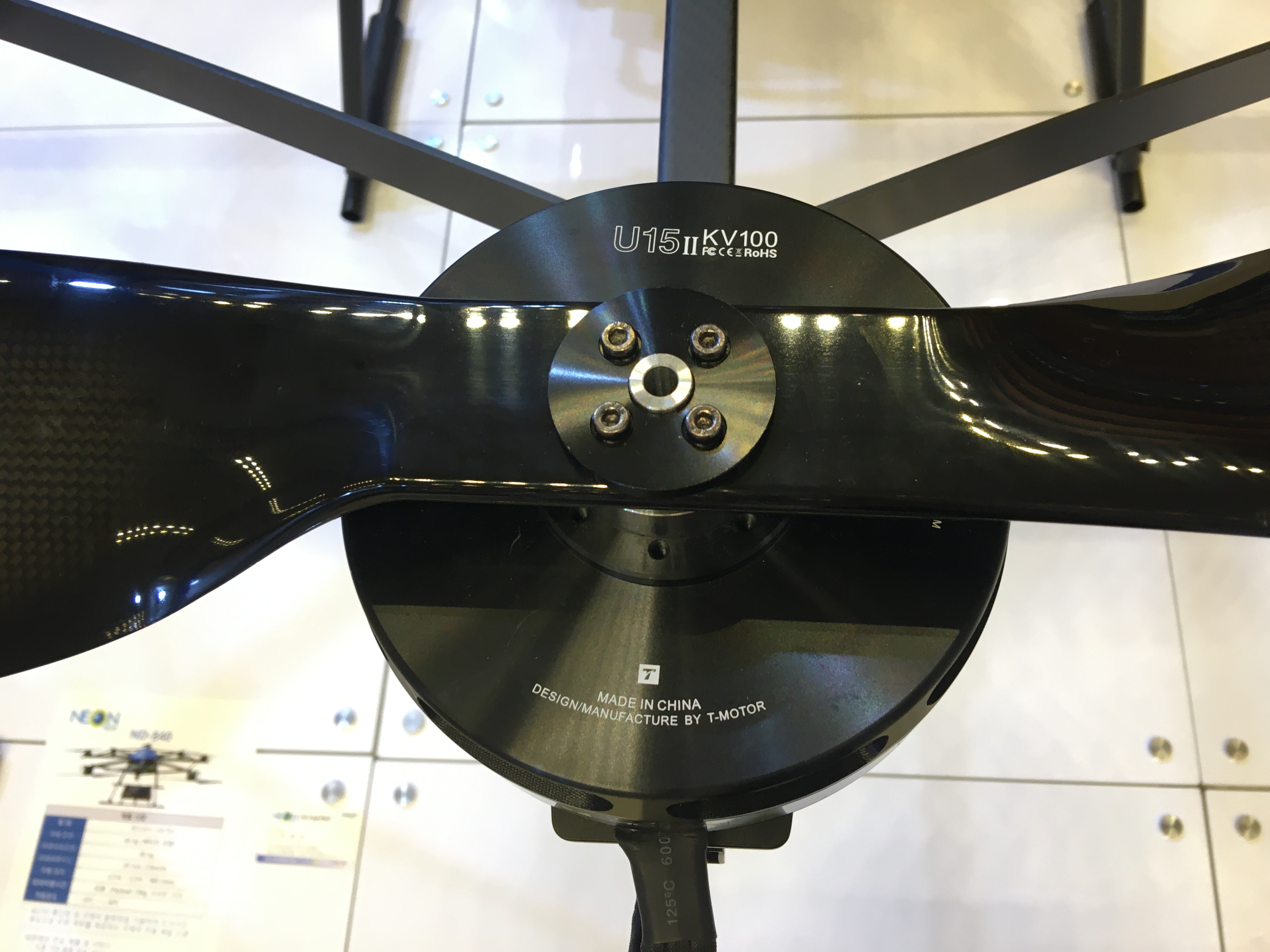 네온테크에서 전시한 드론입니다. 크기에 비행 무게는 많이 무겁지 않은 것 같습니다. 페이로드는 약 20kg 이내로 장착이 가능하고 30분 이내 비행이 가능하다고 합니다.
