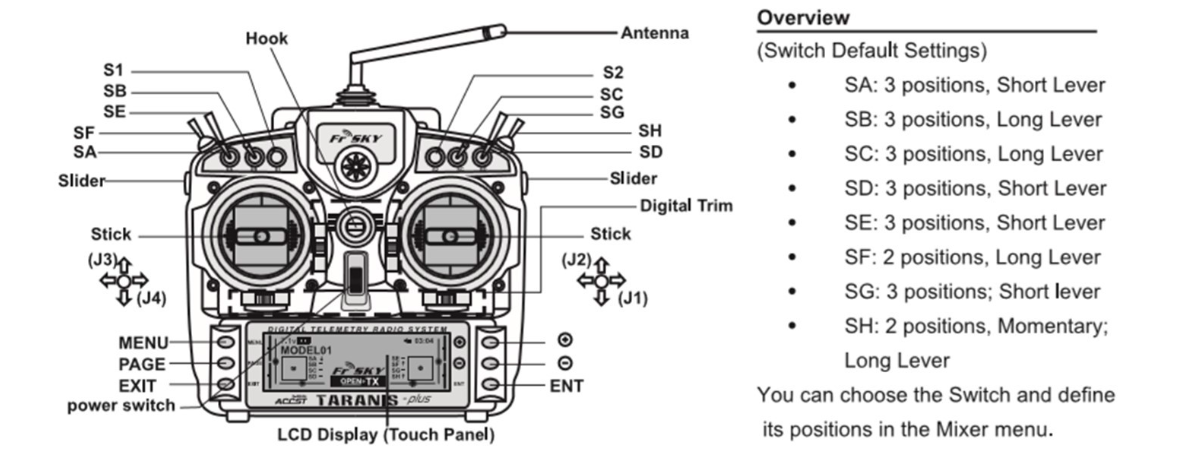 수신기와 함께 사용한 조종기는 Taranis X9D 조종기이며, 16채널중 8채널을 할당하여 사용하고 있다.