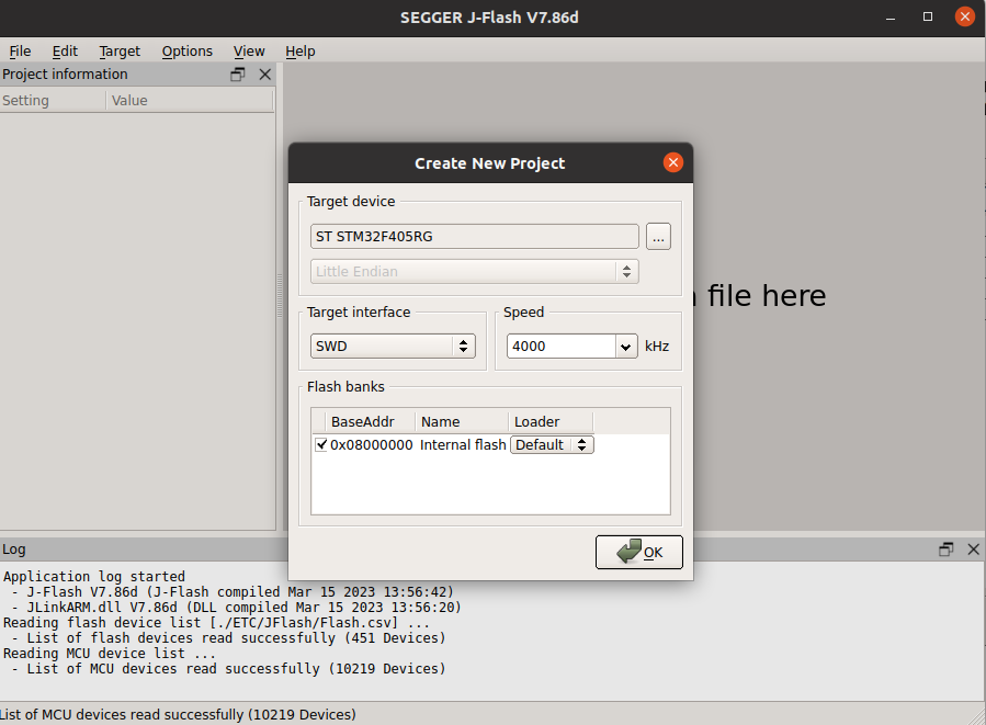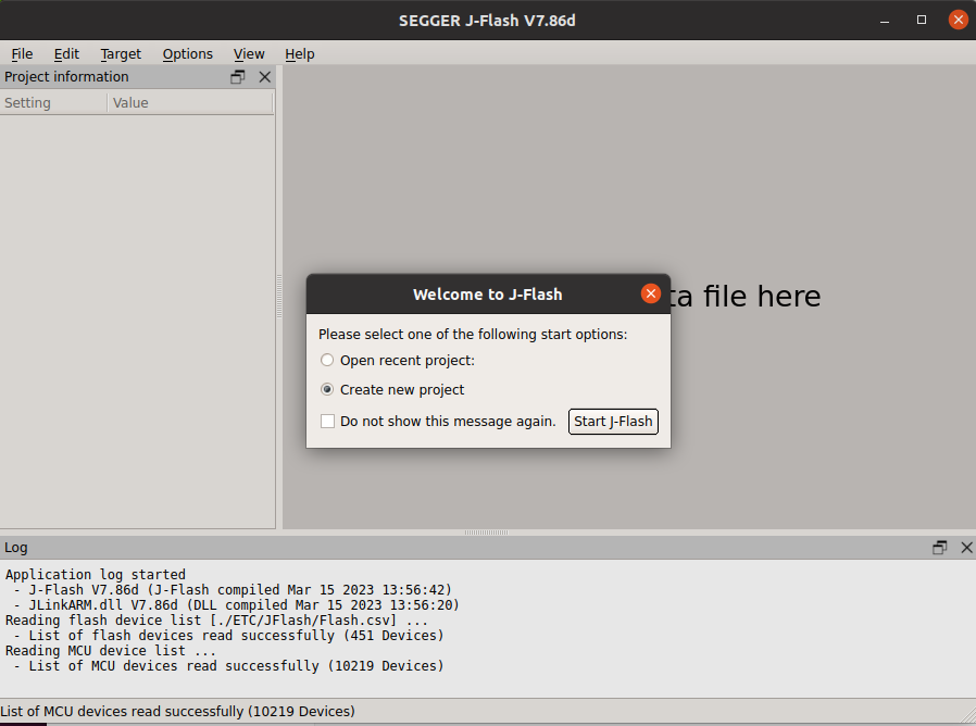- Create new project를 선택하고 Start J-Flash를 누른다.