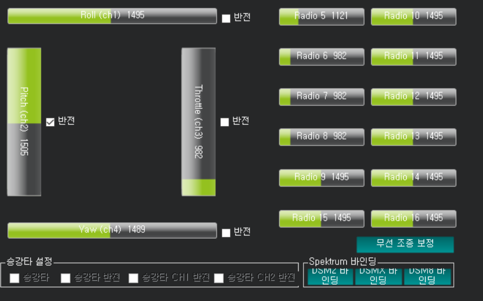 - 모터에서 최대값 인식 음 나면 스로틀 최소(쿼드 모터 4개의 Calibration 완료)
