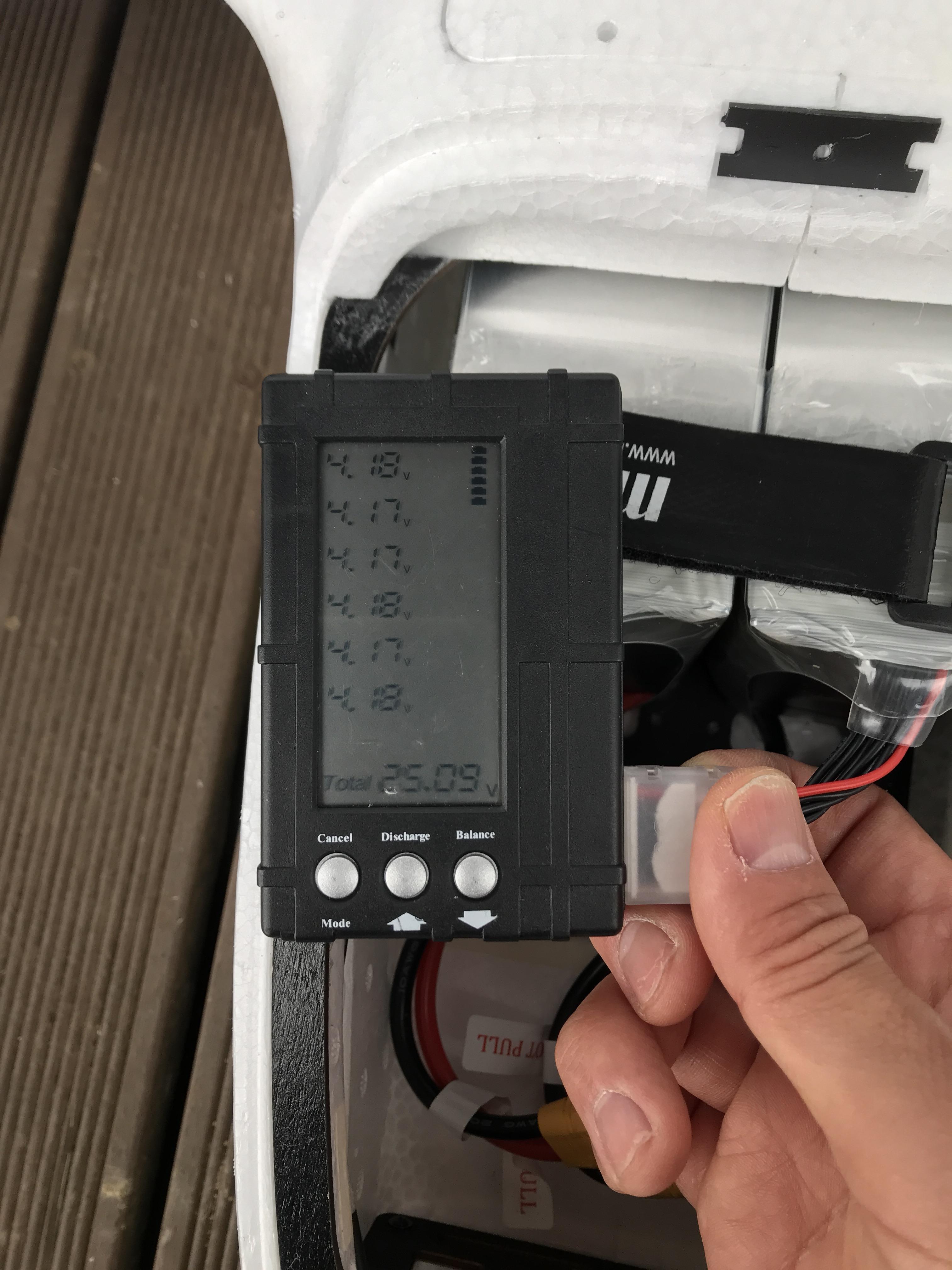 - 배터리 전압상태 체크(리포전압측정기 사용)