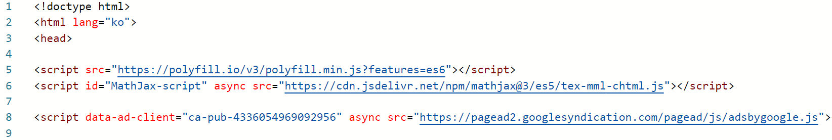 - 아래와 같이 <head> 다음부분에 코드를 삽입해준다.