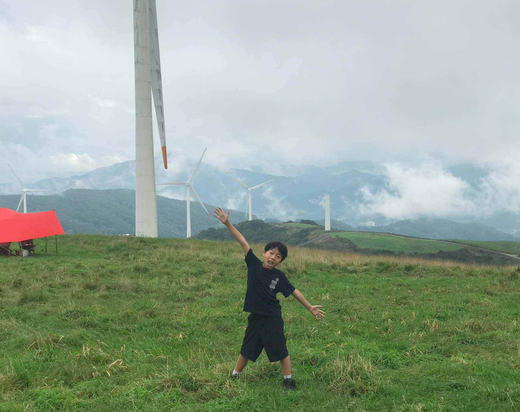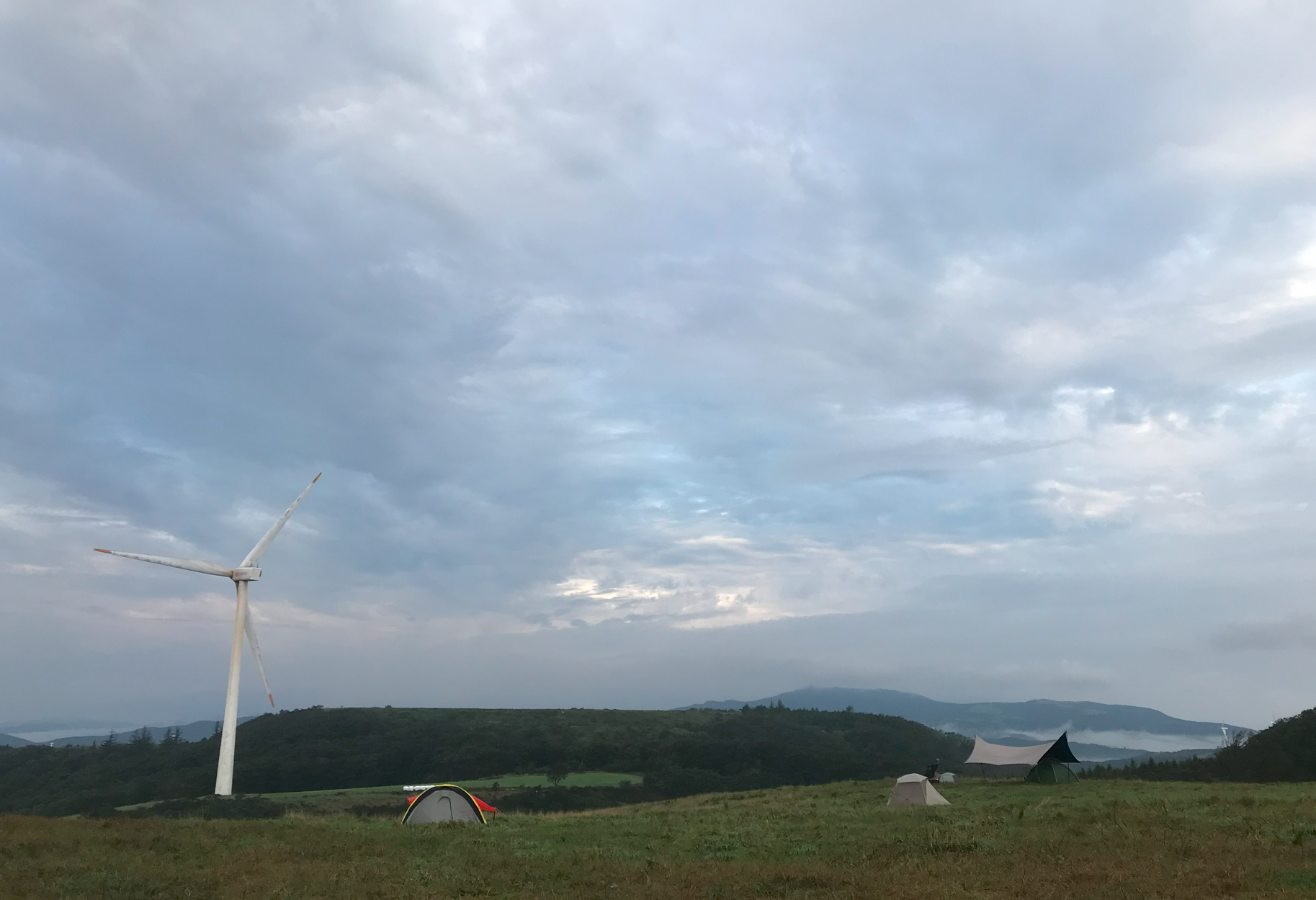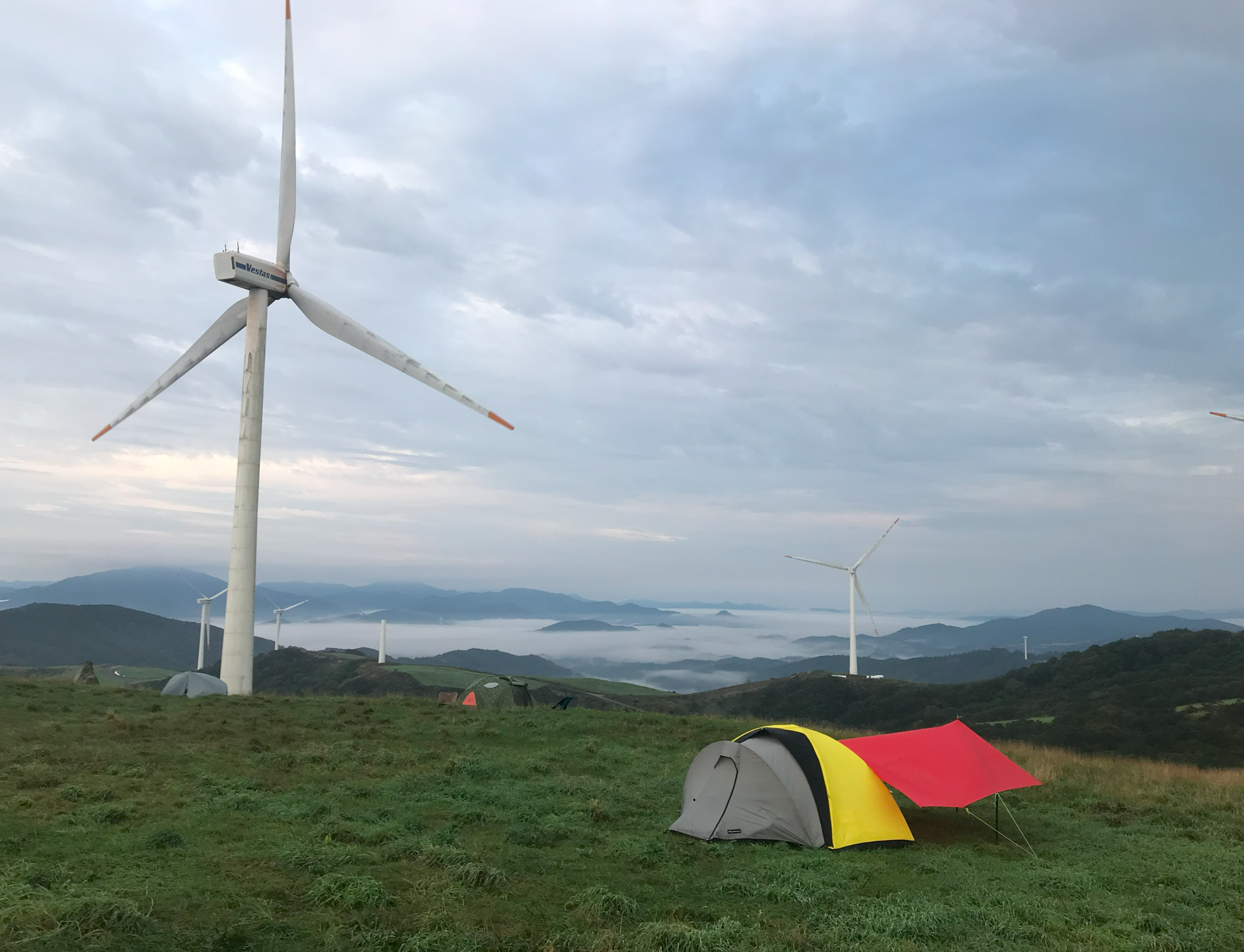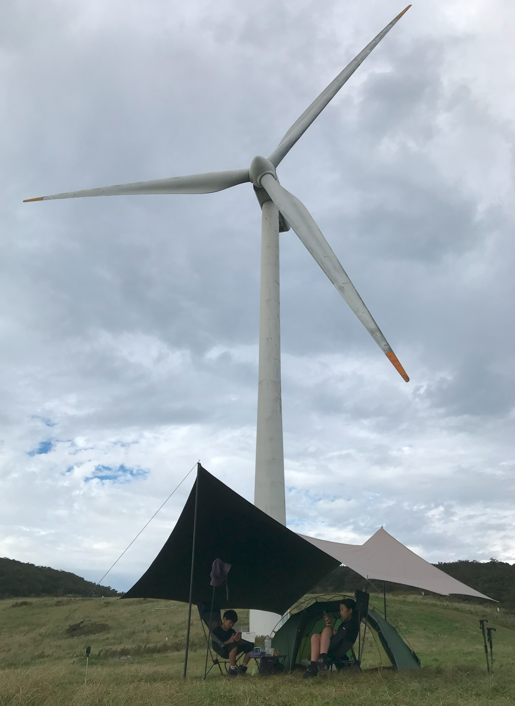 그리고 우리가 자리 잡은 곳이 풍력발전기 앞쪽인데 실제로 보니 생각보디 크기가 크고 거대해서 블레이드가 돌아가는 소기가 자는 중에도 계속 들렸다. 이렇게 큰 발전기가 넘어지면 어쩌나 하는 걱정도 되고... 아이들은 피곤했는지 깊이 잠들어 다행이지만 정작 본인은 이런 저런 걱정에 밤잠을 설쳤다.