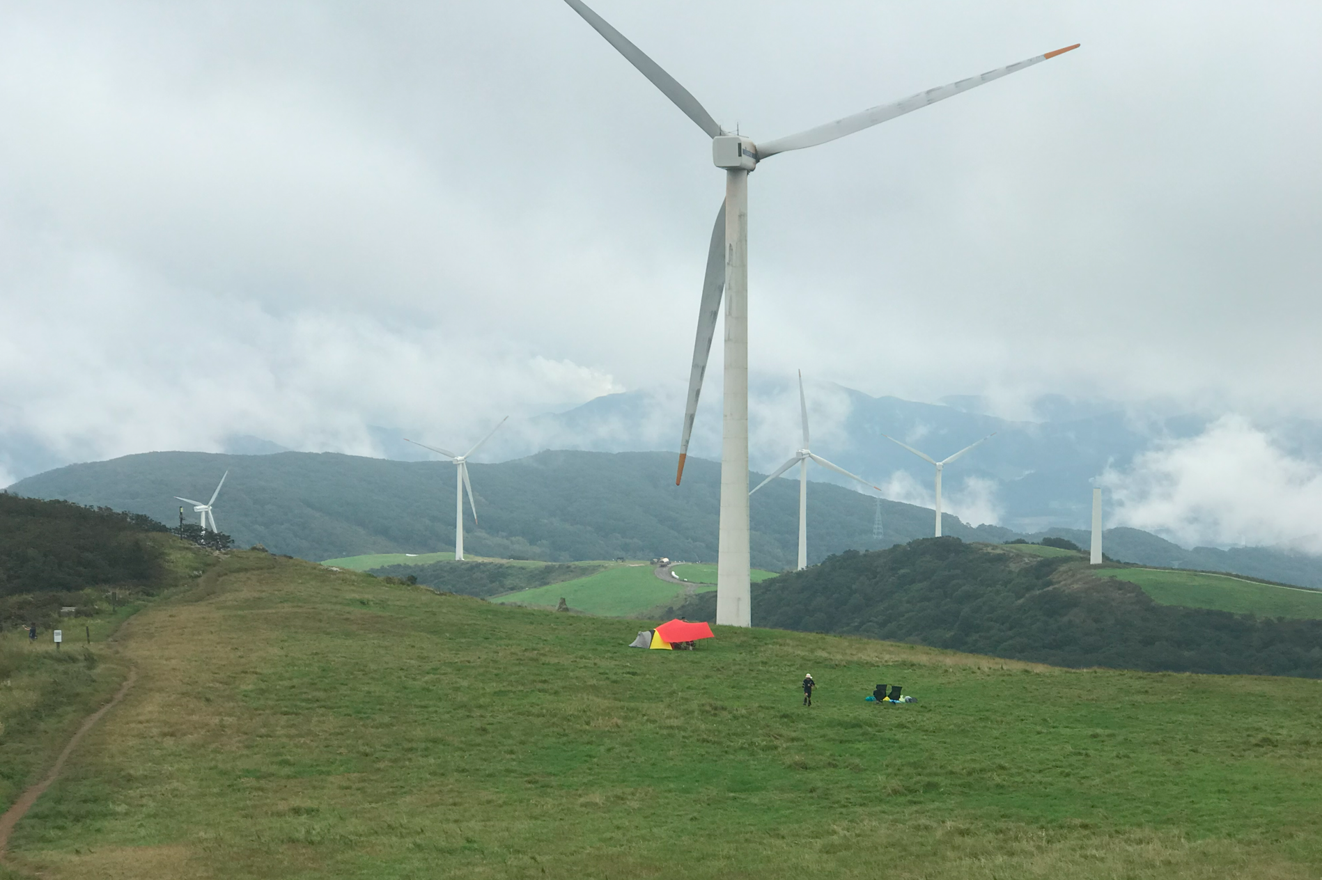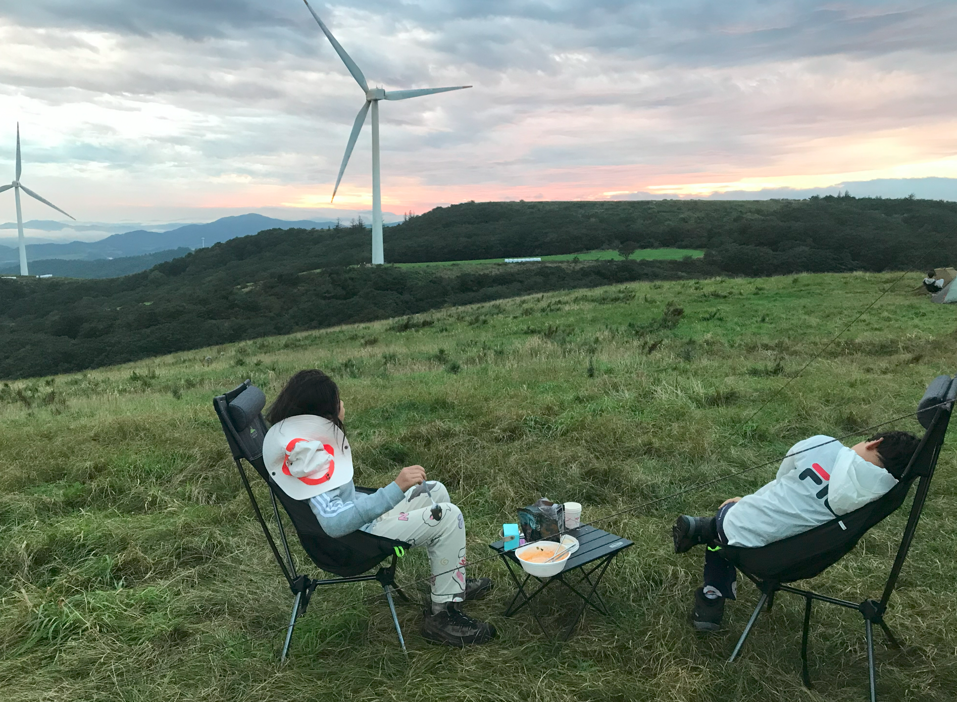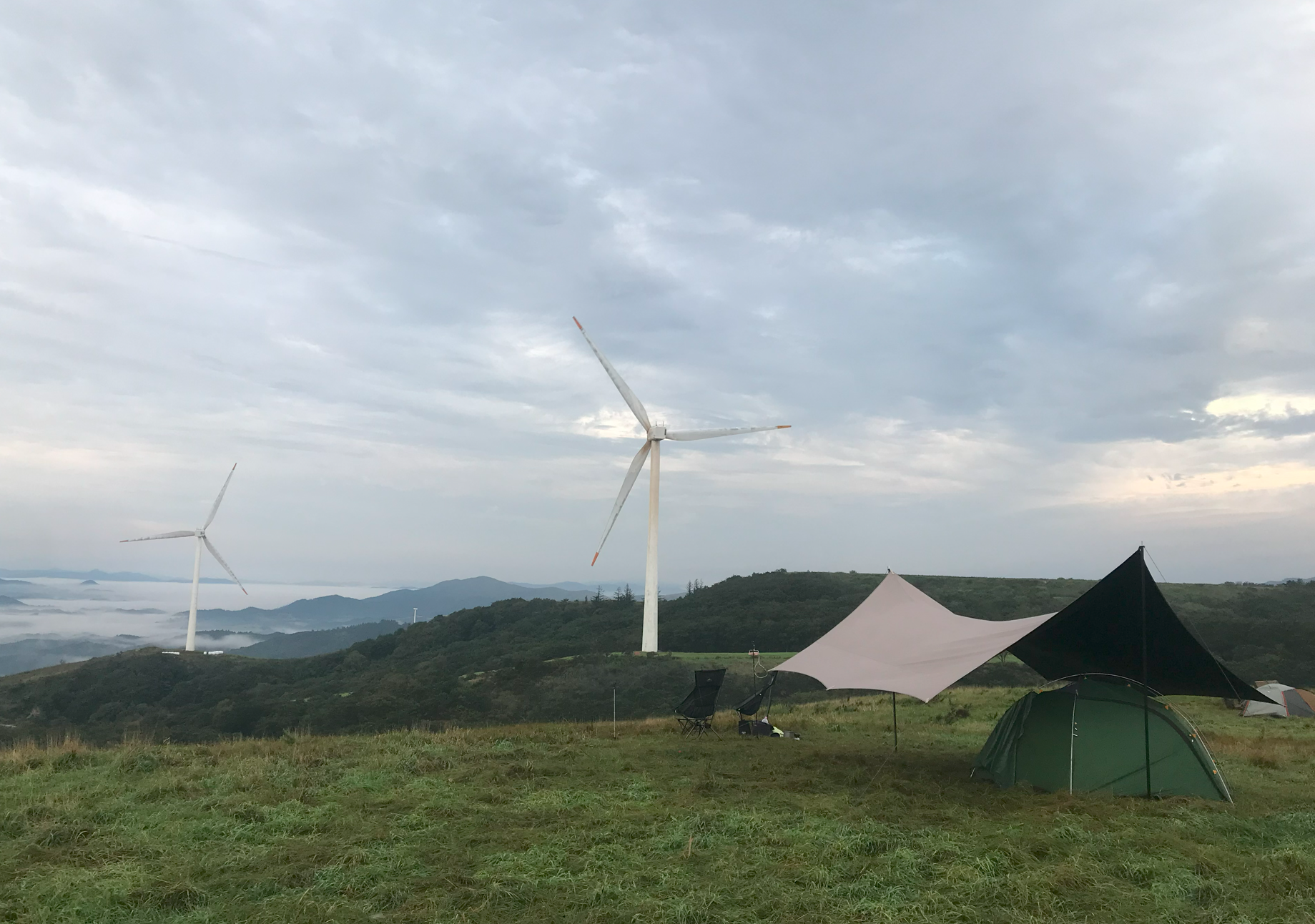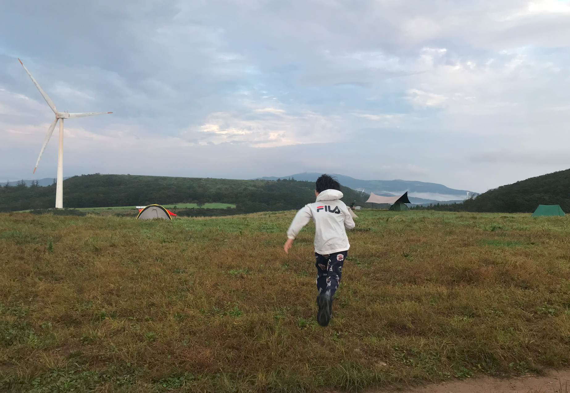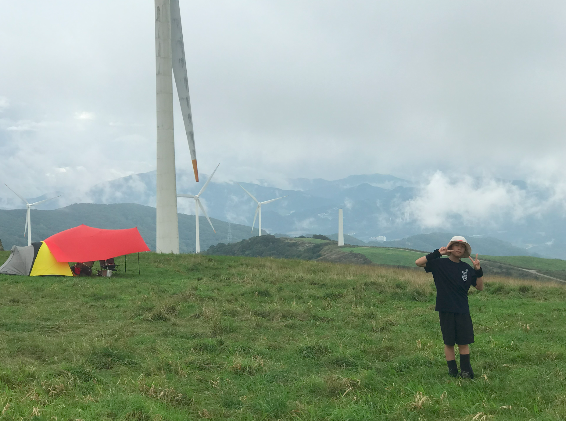 그리고 우리가 자리 잡은 곳이 풍력발전기 앞쪽인데 실제로 보니 생각보디 크기가 크고 거대해서 블레이드가 돌아가는 소기가 자는 중에도 계속 들렸다. 이렇게 큰 발전기가 넘어지면 어쩌나 하는 걱정도 되고... 아이들은 피곤했는지 깊이 잠들어 다행이지만 정작 본인은 이런 저런 걱정에 밤잠을 설쳤다.