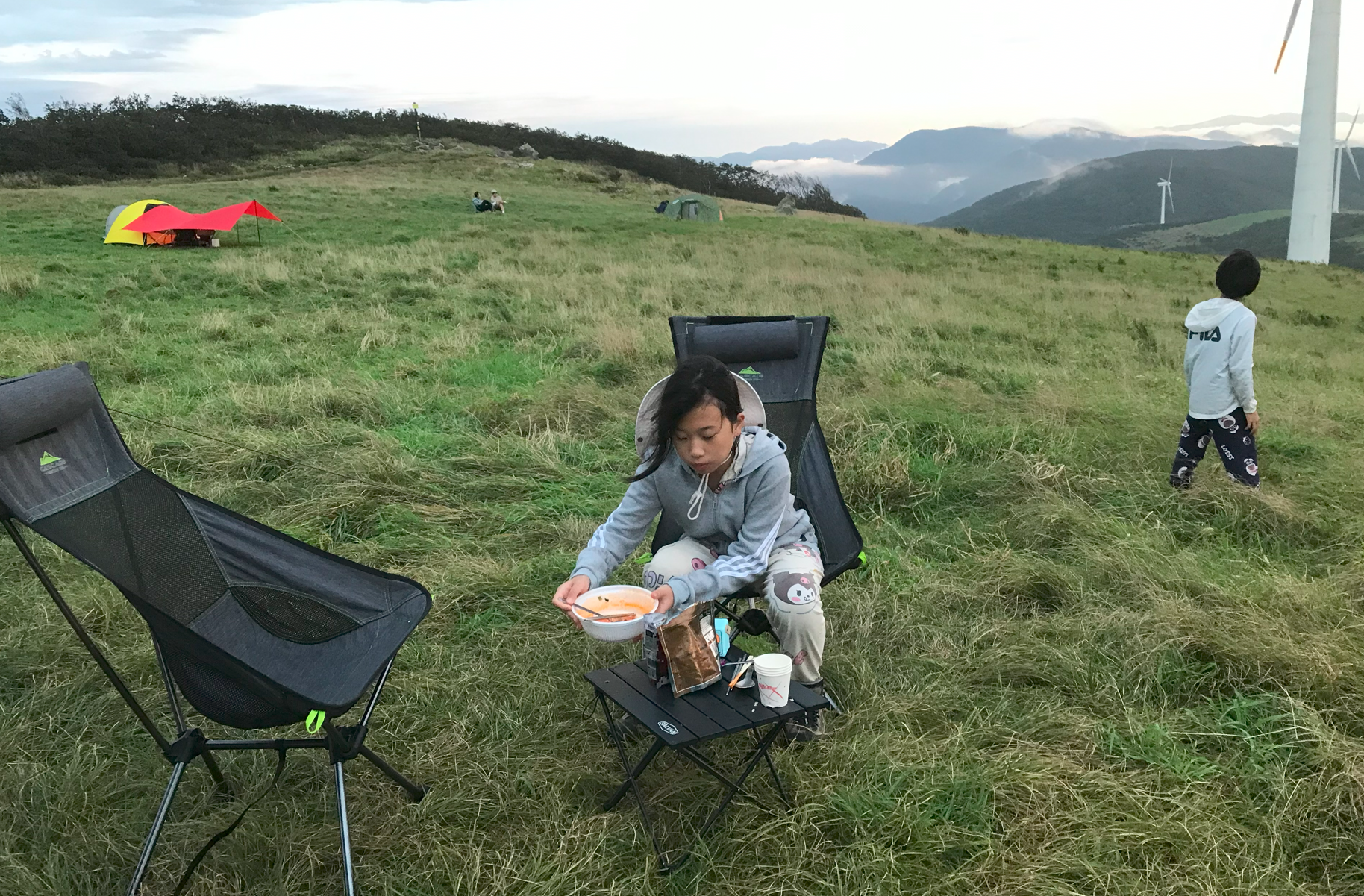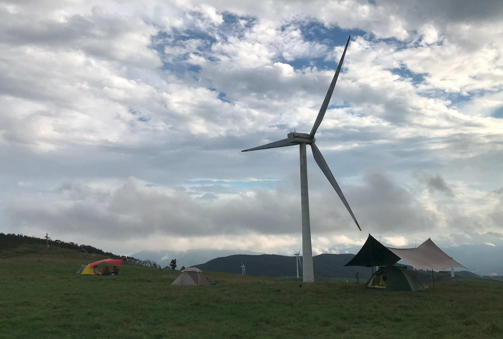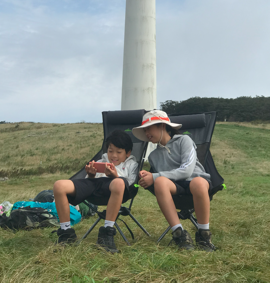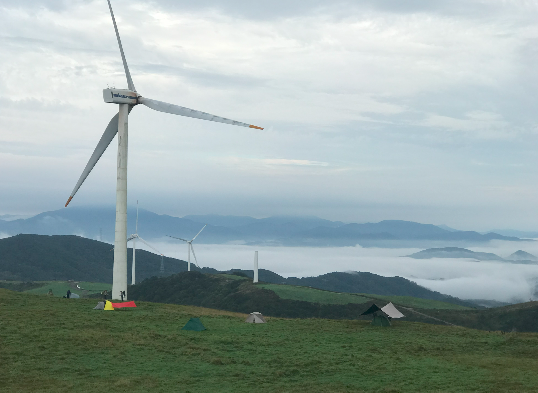 그리고 우리가 자리 잡은 곳이 풍력발전기 앞쪽인데 실제로 보니 생각보디 크기가 크고 거대해서 블레이드가 돌아가는 소기가 자는 중에도 계속 들렸다. 이렇게 큰 발전기가 넘어지면 어쩌나 하는 걱정도 되고... 아이들은 피곤했는지 깊이 잠들어 다행이지만 정작 본인은 이런 저런 걱정에 밤잠을 설쳤다.