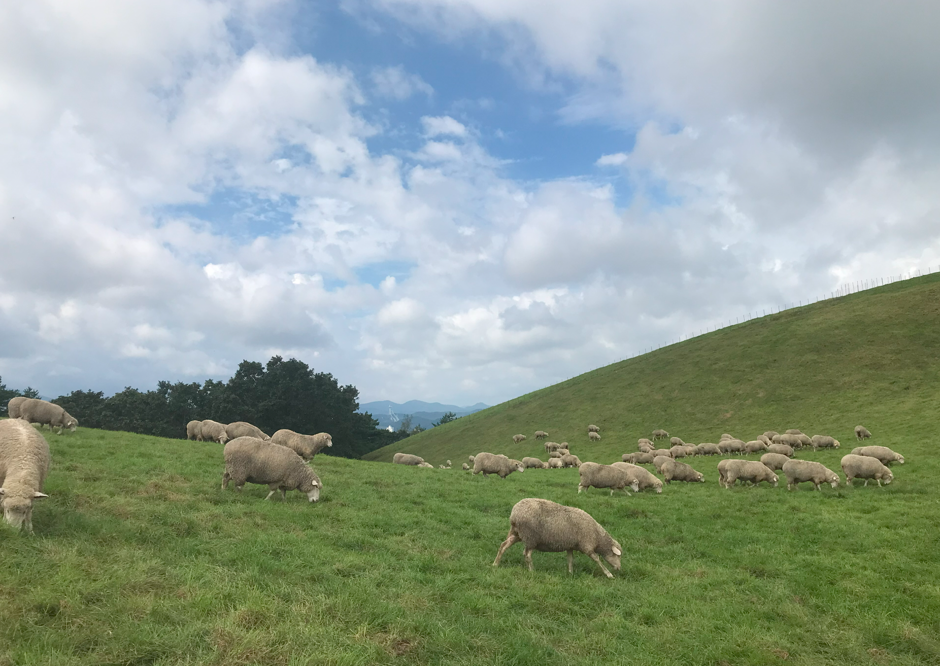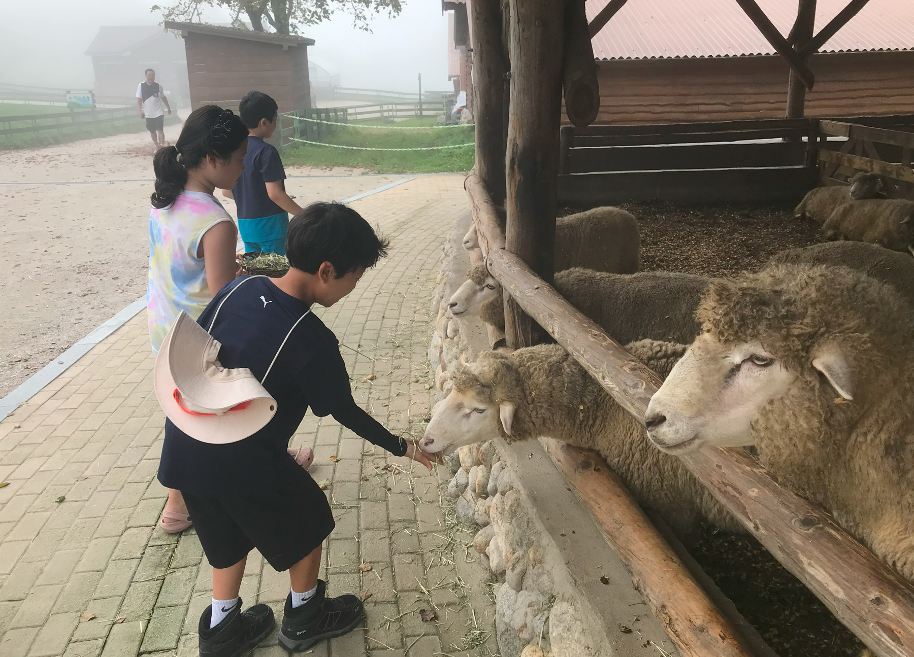 양떼 목장에 도착하자마자 쨍쨍하던 햇빛 사이로 안개가 찬 이슬을 몰고와 시원해졌다. 하늘도 아주 맑았다.