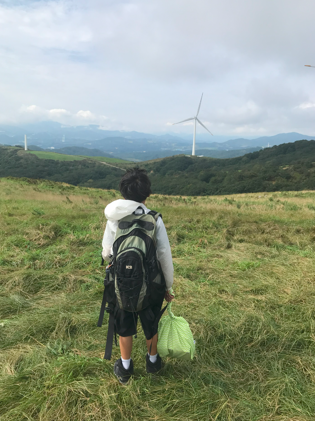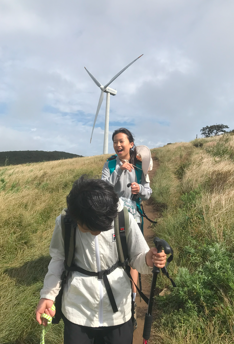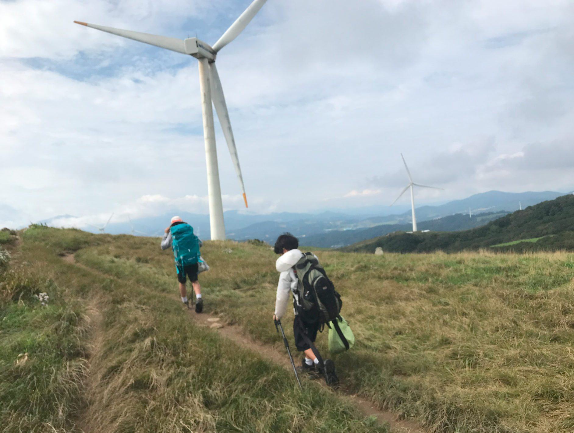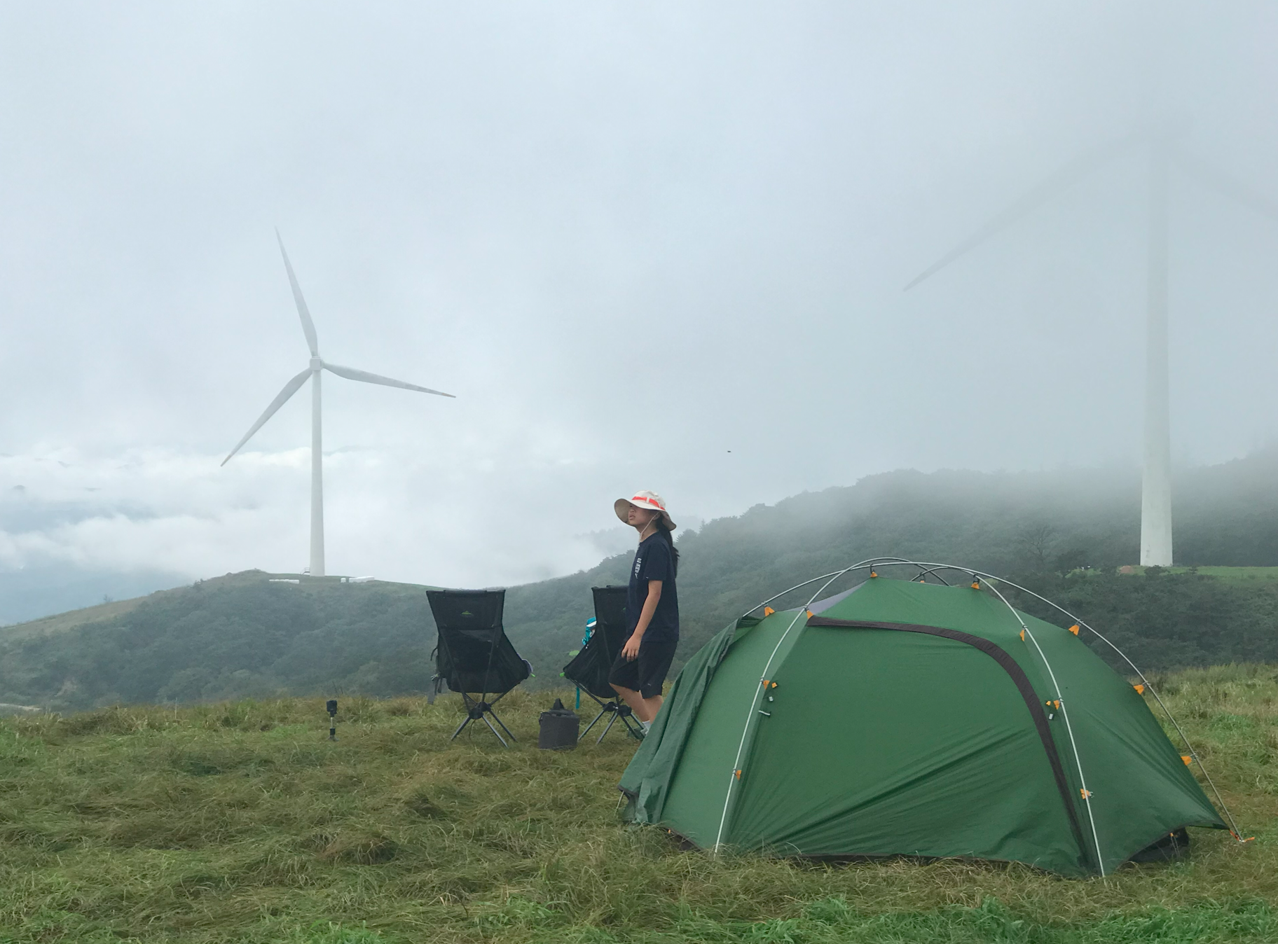 약 한시간 반에 걸쳐 올라온 정상은 정말 장관이었다 굴업도와 비슷한 언덕위로 펼쳐진 초원 분위기와 압도적이 크기의 웅장한 픙력 발전시스템에 멋진 장관을 이루었다.