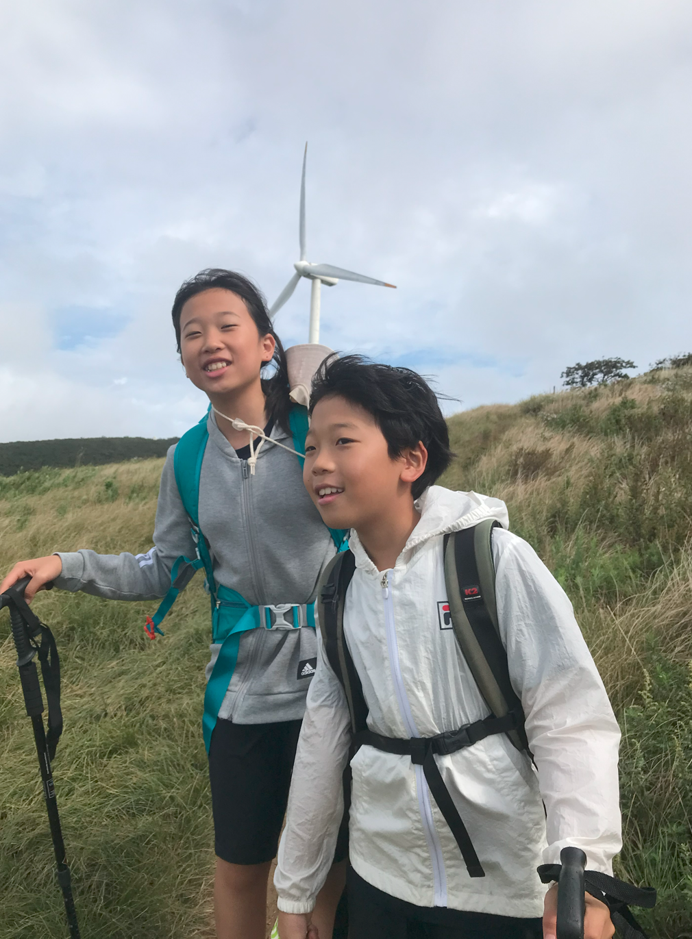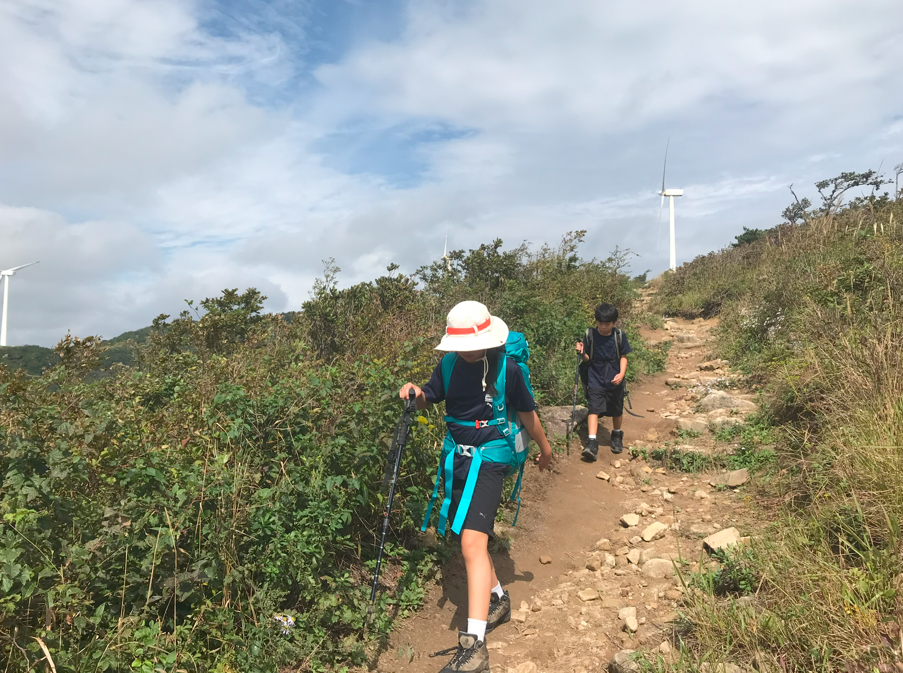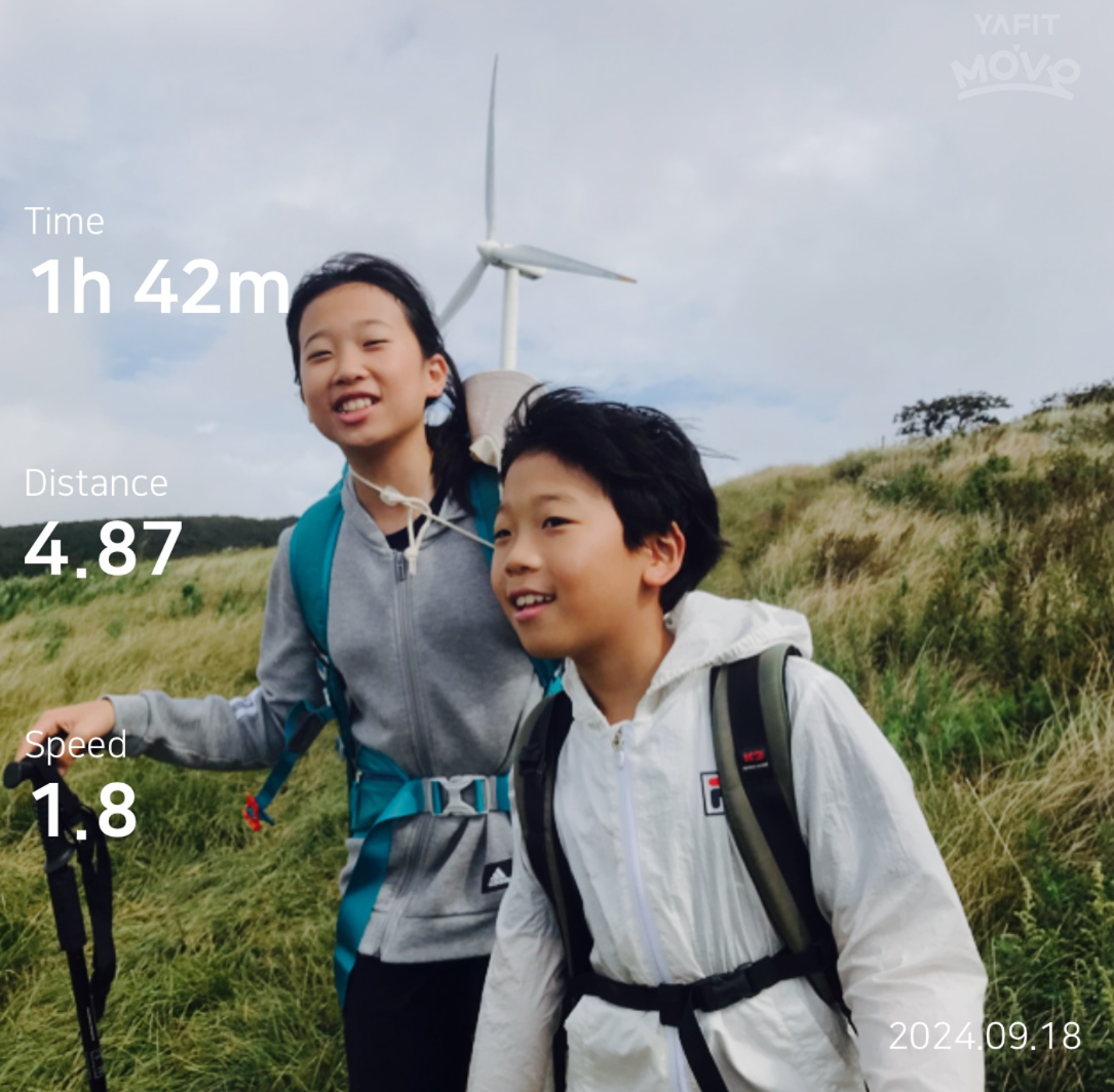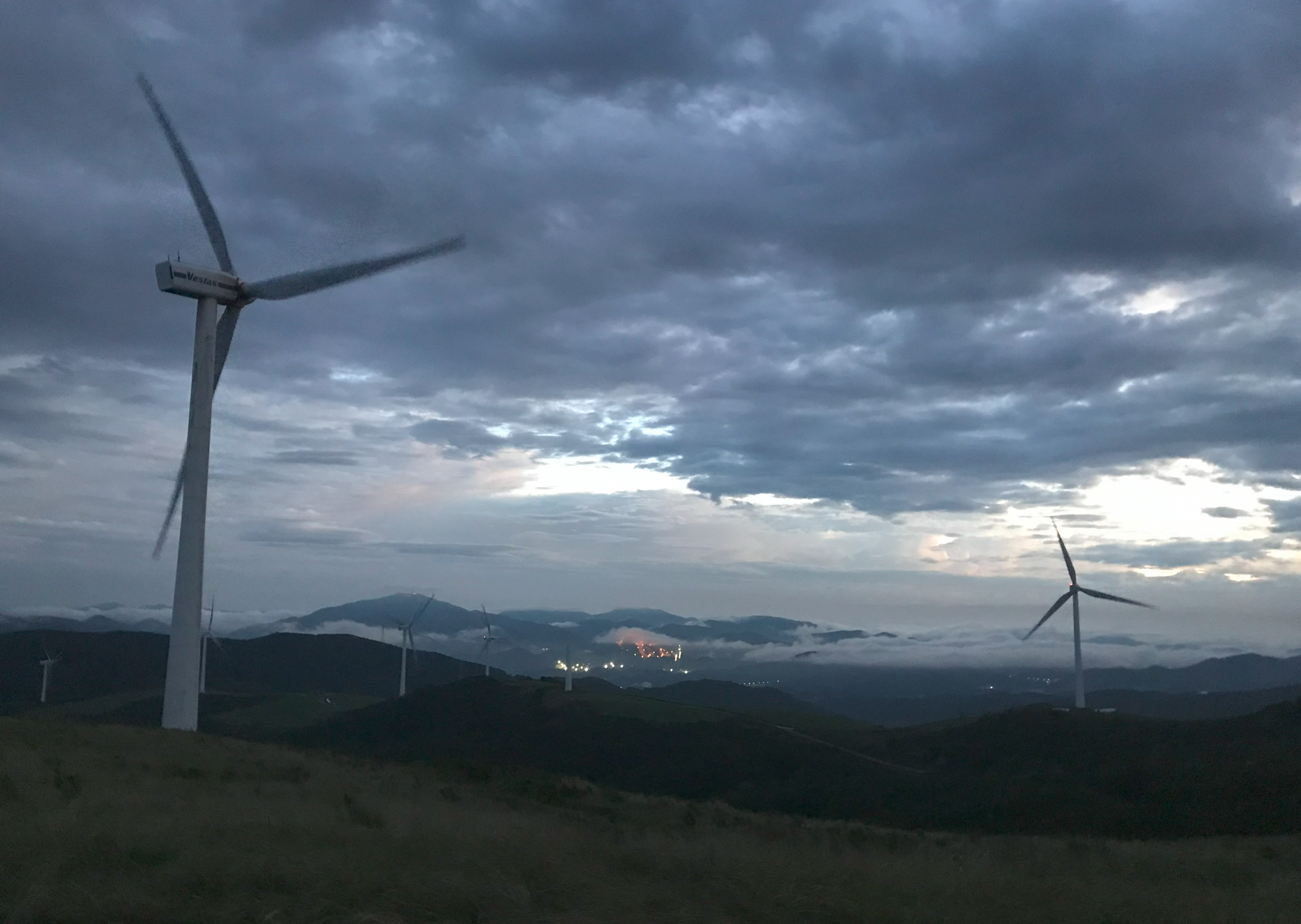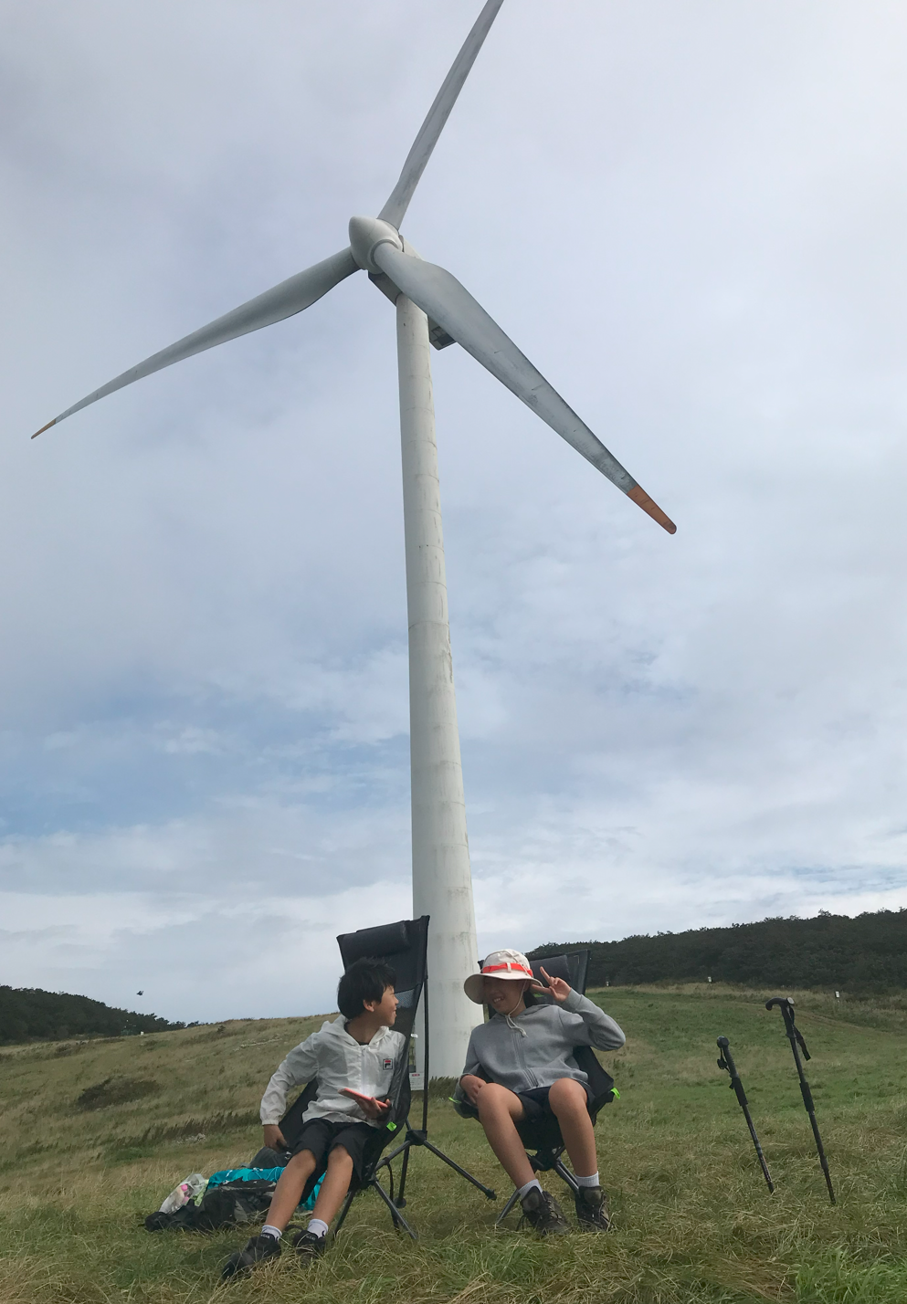 약 한시간 반에 걸쳐 올라온 정상은 정말 장관이었다 굴업도와 비슷한 언덕위로 펼쳐진 초원 분위기와 압도적이 크기의 웅장한 픙력 발전시스템에 멋진 장관을 이루었다.