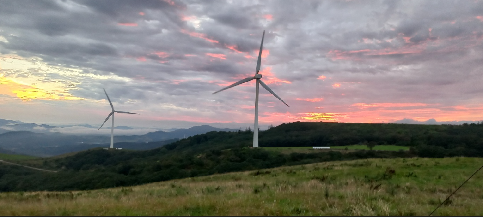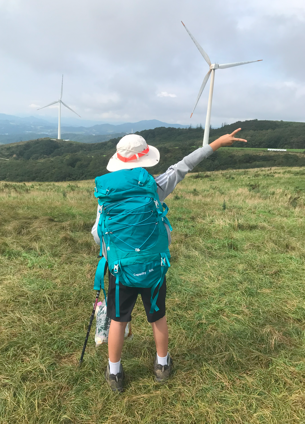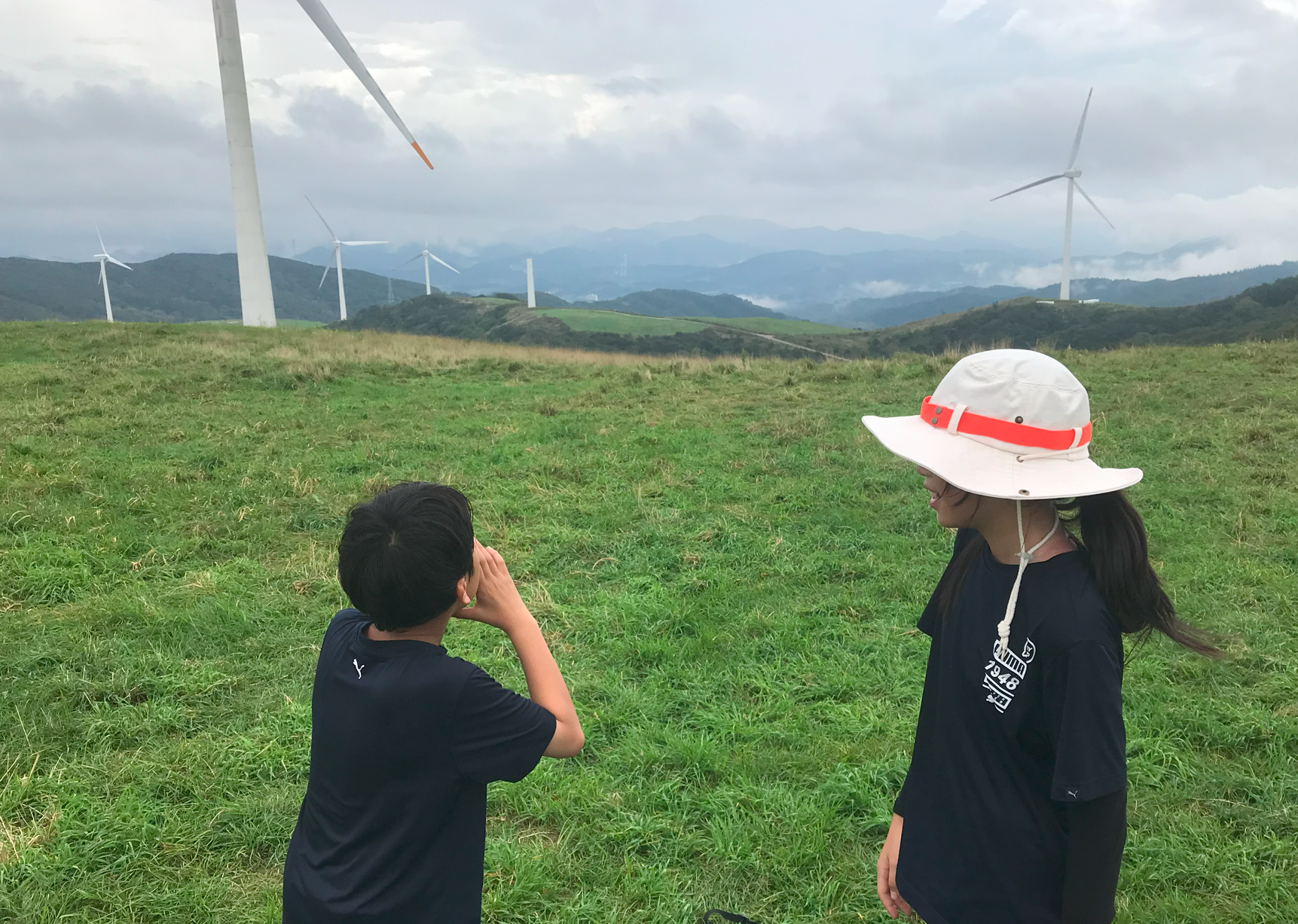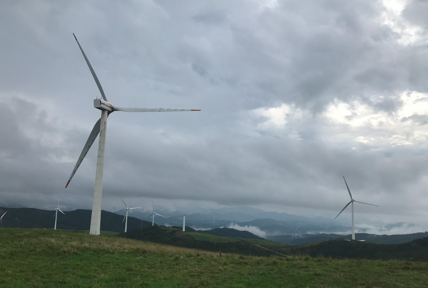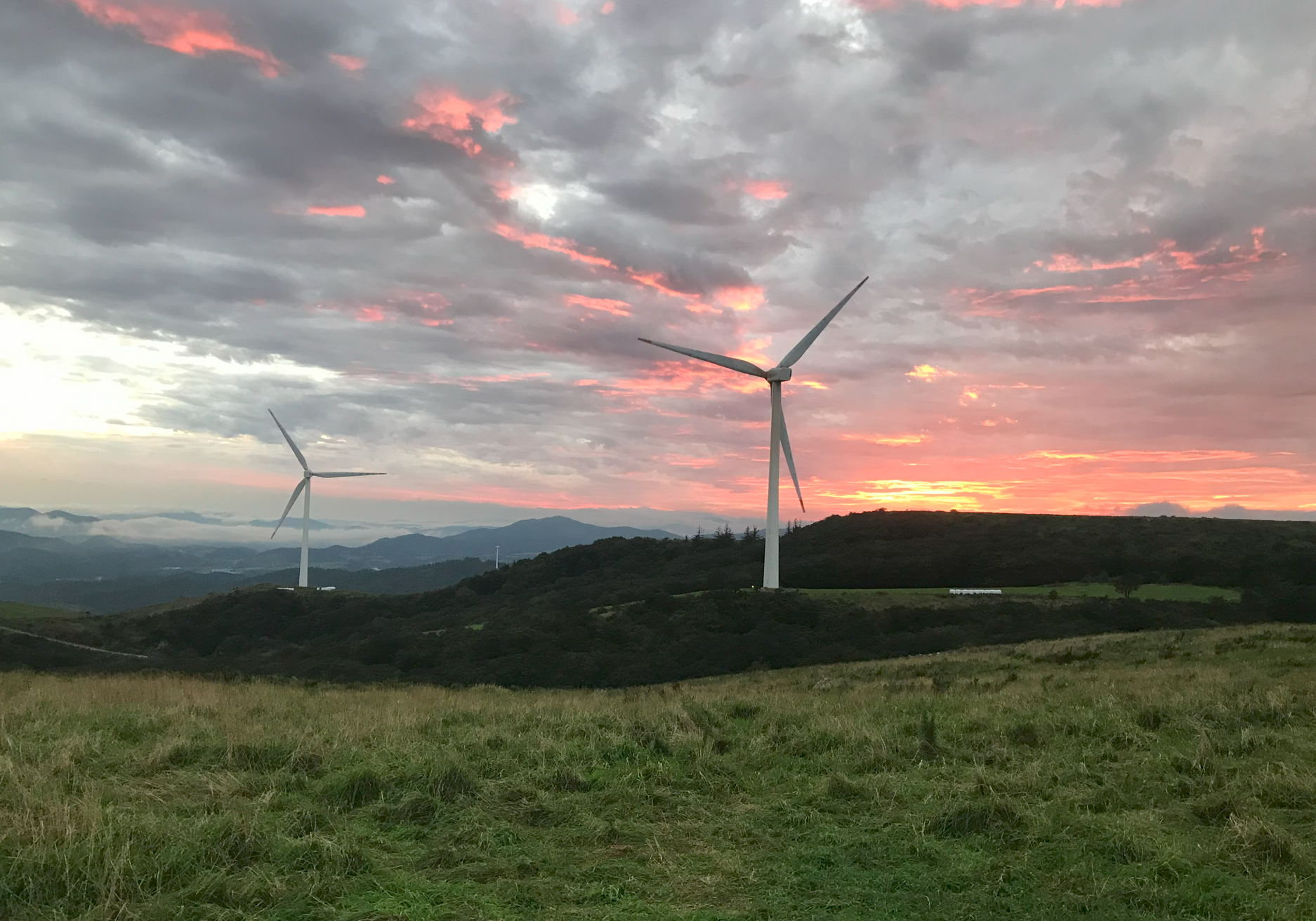 약 한시간 반에 걸쳐 올라온 정상은 정말 장관이었다 굴업도와 비슷한 언덕위로 펼쳐진 초원 분위기와 압도적이 크기의 웅장한 픙력 발전시스템에 멋진 장관을 이루었다.