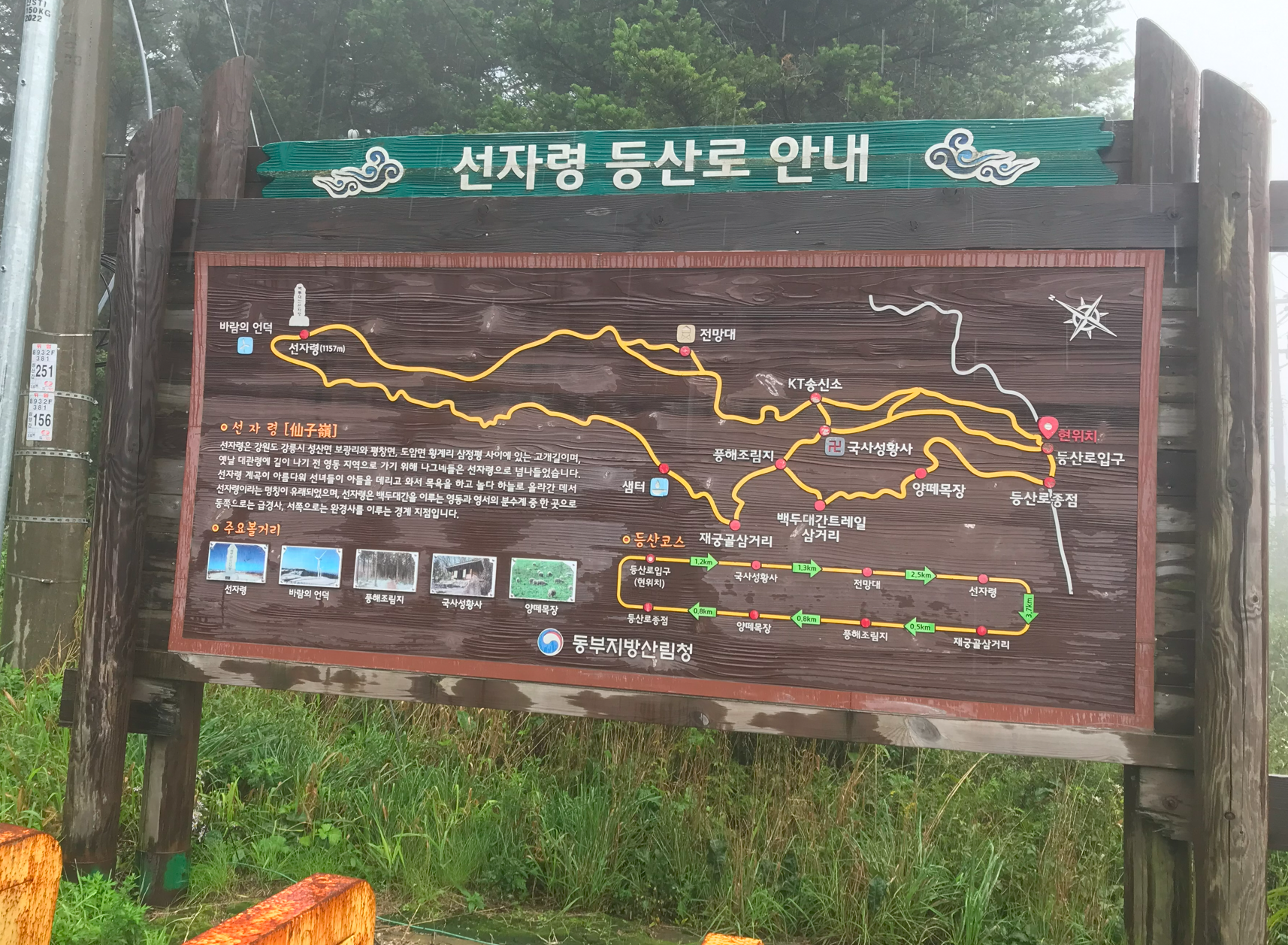 사이좋게 점심 식사를 마치고 마지막으로 마트에 들러 라면을 사서 이제 선자령 고개를 향했다. 선자령 등산로 입구에는 이렇게 친절하게 코스에 대해 안내되어 있다. 하지만 인터넷 검색을 해보니 국사성황사까지는 차로 올라갈 수 있다고 해서 국사성황사까지 차로 이동했다.