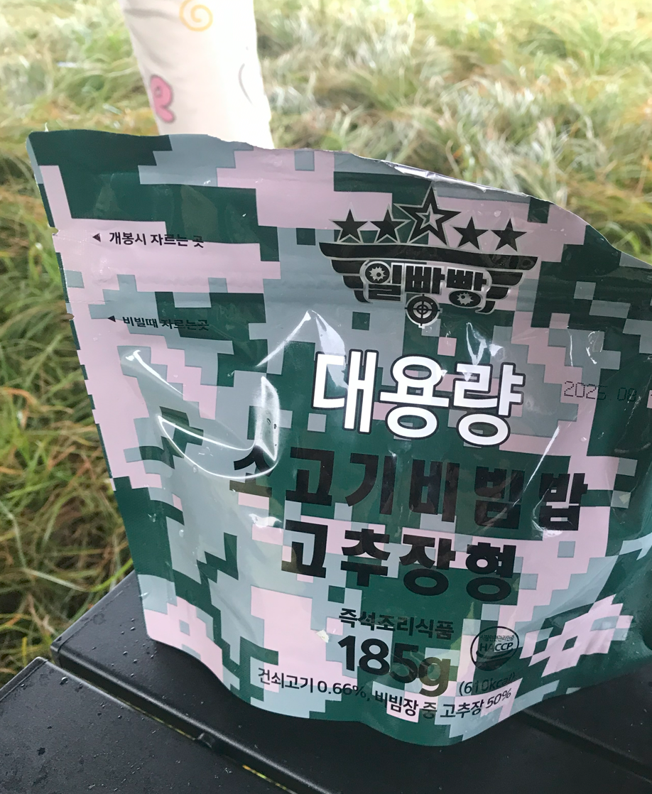전투식량은 찬물을 부으면 바로 끓는 비화식인줄 일았는데 뜨거운 물을 부어야 된다고 나와 있다. 뜨거운 물을 붓고 15분을 기다리니 그래도 제법 먹을 만한 음식이 되었다.