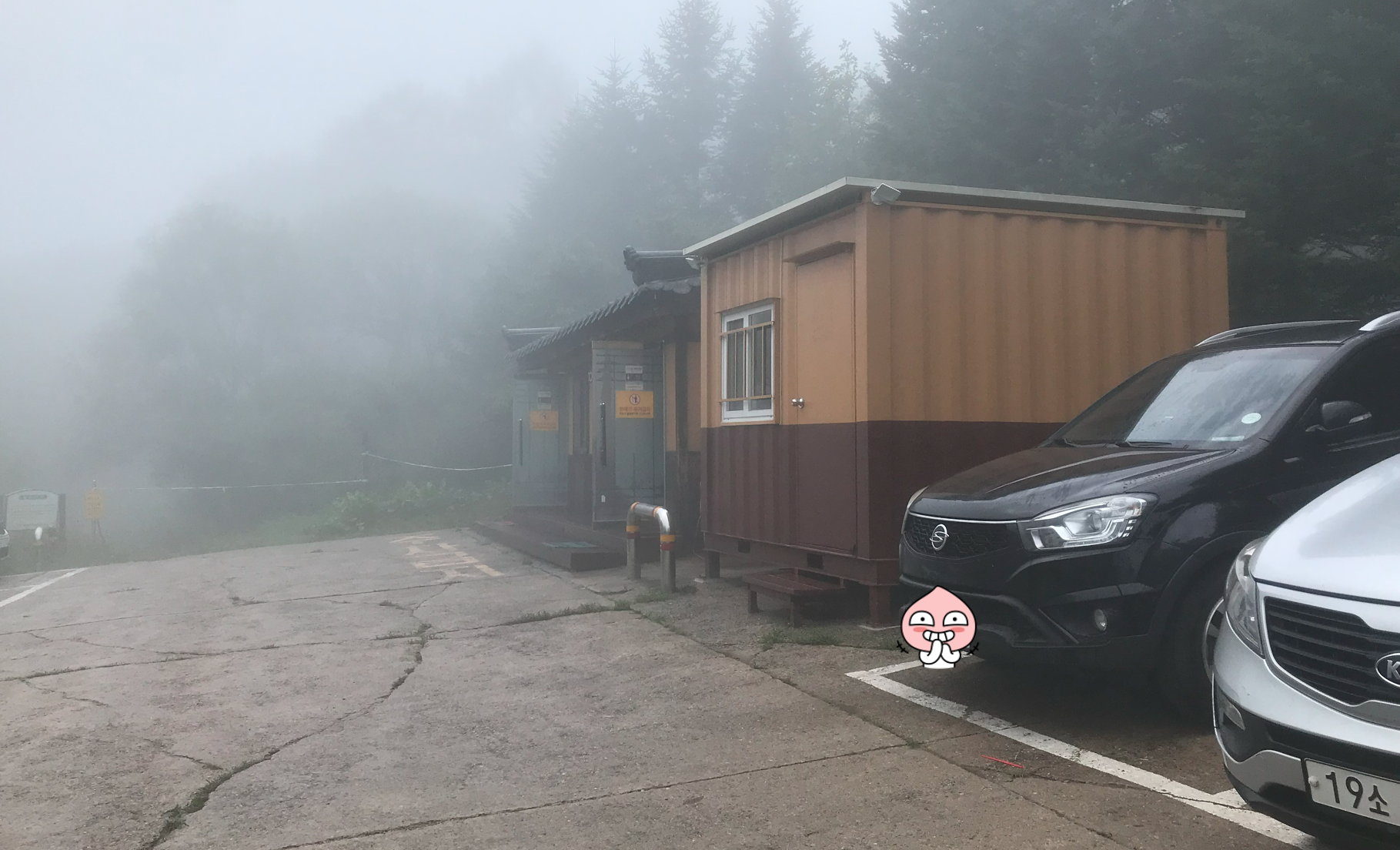 국사성황사 주차장에는 화장실과 차가 몇대정도 주차할 수 있는 공간이 있다. 나중에 알게된 사실이지만 여기는 국사성황사를 방문하는 분들만 이용이 가능하고 등산객들은 입구에 주차를 해야된다고 한다. 다음에는 아래 주차장에 주차를 하고 올라와야 한다.
