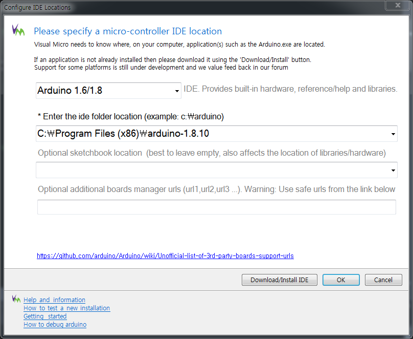 아두이노 UNO를 이용할 경우 보드설정은 아래와 같다.