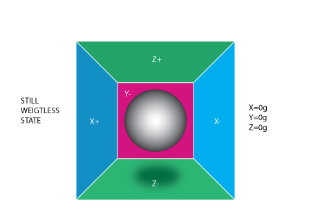 우주와 같이 중력이 작동하지 않는 공간에서는 3축 모두 0의 값을 가진다.