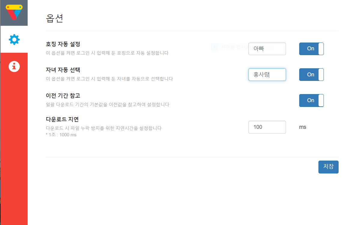 자녀가 여러면이면 다운로드가 끝나고 다시 옵션으로 와서 자녀이름을 바꾸면 된다.