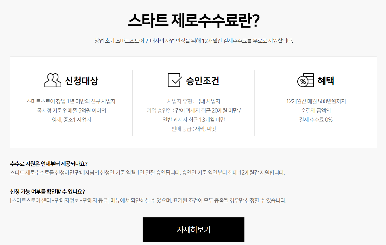 신청은 스마트스토어 판매자센터 -> 판매자 등급 -> 성장 지원 프로그램 -> D-커머스 프로그램 -> 스타트 제로수수료으로 들어가면 됩니다.