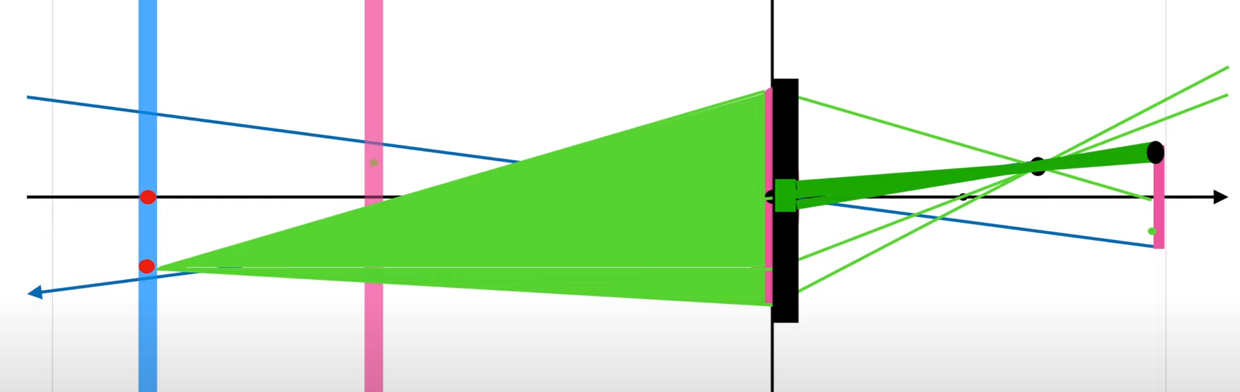 초점보다 멀리있는 곳에서 들어온 점(파란색 선상)은 센서에 하나의 점이 아닌 퍼진형태로 상이 맺힌다.