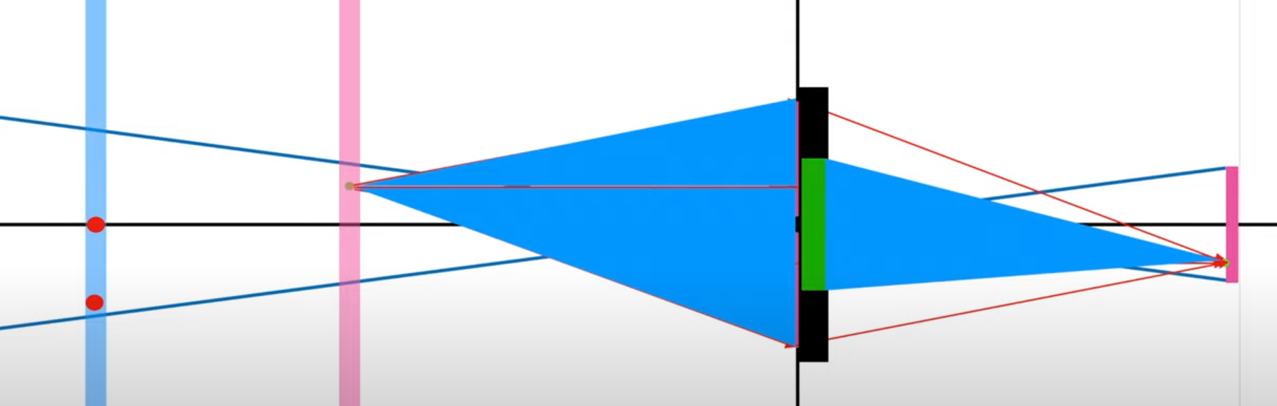 초점보다 멀리있는 곳에서 들어온 점(파란색 선상)은 센서에 하나의 점이 아닌 퍼진형태로 상이 맺힌다.