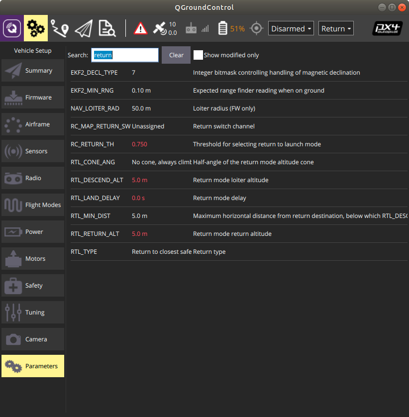 그리고 SITL에서 Return시 높이의 디폴트 값이 30m인데 시뮬레이션에서는 공간이 크지 않으므로 5m이내로 제안하였다.