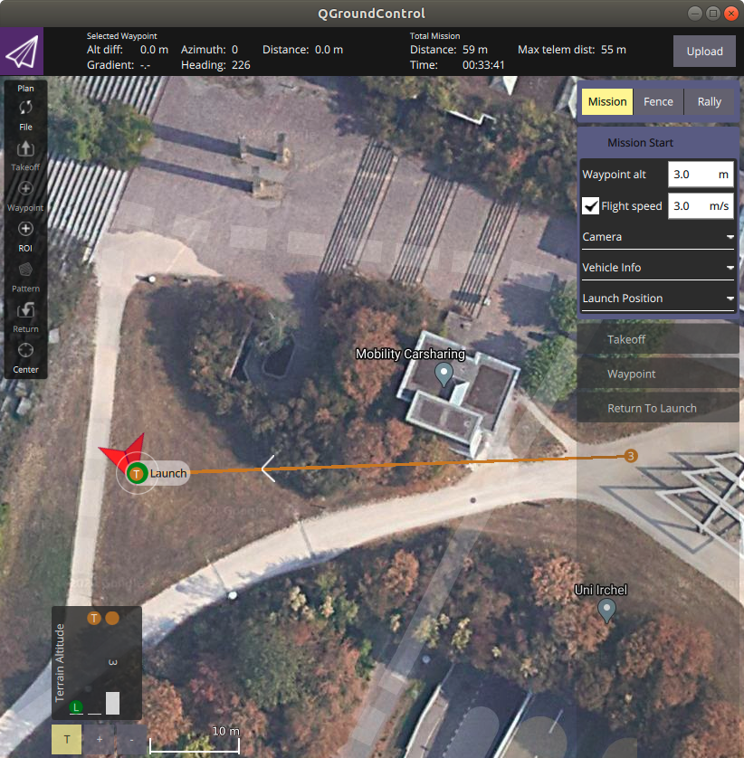waypoint 설정이 끝나면 오른쪽 상단의 Upload를 해주어야 미션에서 설정한 값이 PX4로 전달된다.