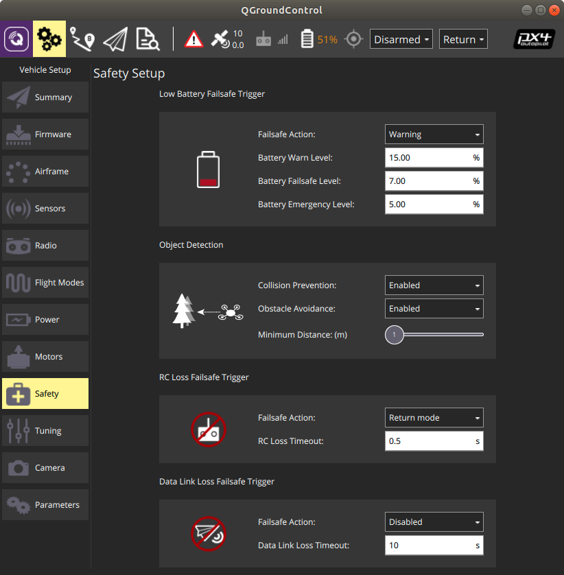 기능을 활성화하기 위해서 PX4 stack에서는 COM_OBS_AVOID 파라메터를 활성화해주어야 한다.