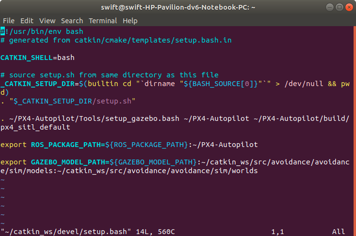 $ . ~/PX4-Autopilot/Tools/setup_gazebo.bash ~/PX4-Autopilot ~/PX4-Autopilot/build/px4_sitl_default $ export ROS_PACKAGE_PATH=${ROS_PACKAGE_PATH}:~/PX4-Autopilot