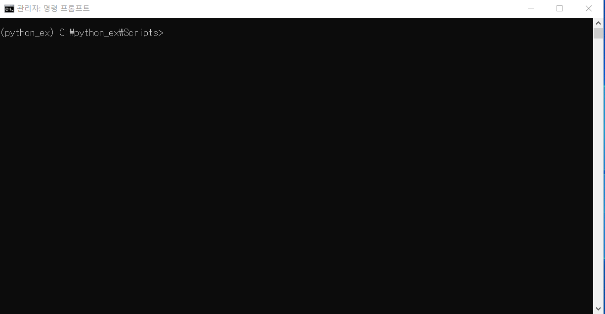 cd Scripts 입력하여 하위 폴더로 들어가서 'Activation' 을 입력하면 가상환경 활성화된다. 비활성화는 'deactivate' 라고 입력한다.