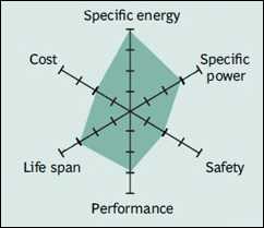 Very high specific energy, limited specific power. Cobalt is expensive. Serves as Energy Cell. Market share has stabilized. Early version; no longer relevant. |