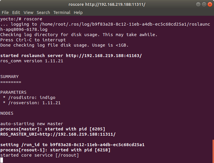| yocto:/ # roscore |