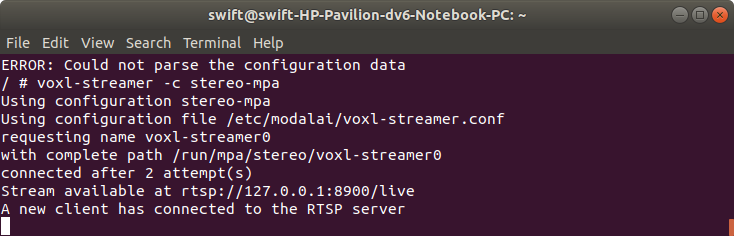 | / # voxl-camera-server ------ voxl-camera-server INFO: Port J2 ------ voxl-camera-server: Done configuring hires camera Port : port_J2 Name : hires Enabled : 1 Type : hires Api : hal3 P-W : 640 P-H : 480 P-Fmt : nv21 Rotation : 180 FPS : 30 OverrideId : -1 AEAlgo : isp ------ voxl-camera-server INFO: Port J3 ------ voxl-camera-server: Done configuring stereo camera Port : port_J3 Name : stereo Enabled : 1 Type : stereo Api : hal3 P-W : 1280 P-H : 480 P-Fmt : nv21 Rotation : 0 FPS : 30 OverrideId : -1 AEAlgo : mvcpa mvcpa_filter_size : 2 mvcpa_exp_cost : 0.7500 mvcpa_gain_cost : 0.2500 mvcpa_histogram : true ------ voxl-camera-server INFO: Port J4 ------ voxl-camera-server: Done configuring tracking camera Port : port_J4 Name : tracking Enabled : 1 Type : tracking Api : hal3 P-W : 640 P-H : 480 P-Fmt : raw8 Rotation : 0 FPS : 30 OverrideId : -1 AEAlgo : mvcpa mvcpa_filter_size : 2 mvcpa_exp_cost : 0.7500 mvcpa_gain_cost : 0.2500 mvcpa_histogram : true Creating pipe: /run/mpa/stereo/ channel: 1 Creating pipe: /run/mpa/tracking/ channel: 2 tracking Camera Width: 640, Height: 480, Format: 291 not supported! FASTCV: fcvAvailableHardware Linux MachineVision is licensed as community user LNX_8074 supported? 1 LNX_8096 supported? 1 LNX_IA64 supported? 1 WINDOWS supported? 0 hires stereo FASTCV: fcvAvailableHardware Linux MachineVision is licensed as community user LNX_8074 supported? 1 LNX_8096 supported? 1 LNX_IA64 supported? 1 WINDOWS supported? 0 |