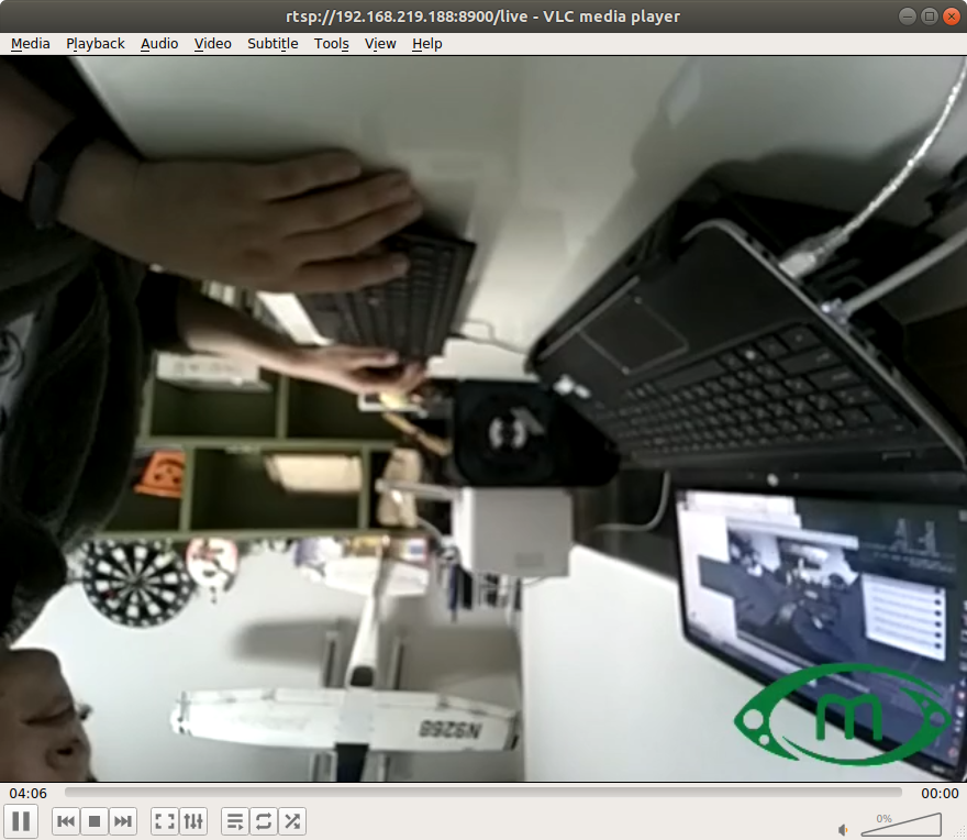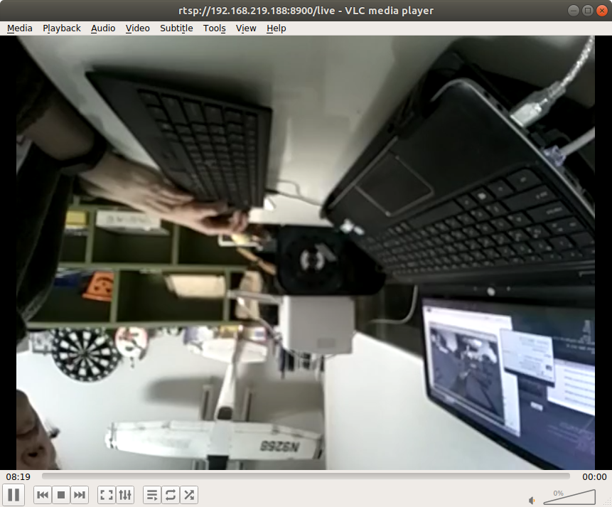 영상이 거꾸로 나오기는 하지만 VLC 플레이어로 스트리밍이 재생된다.