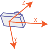 SNAV and the ModalAI Vision Lib use the convention of X to the right, Y down, and Z out the front of the lens.