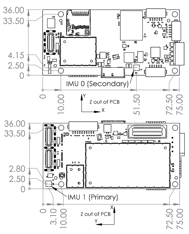 The primary IMU is connected to BLSP1 and is accessible through the SDSP at /dev/spi-1.