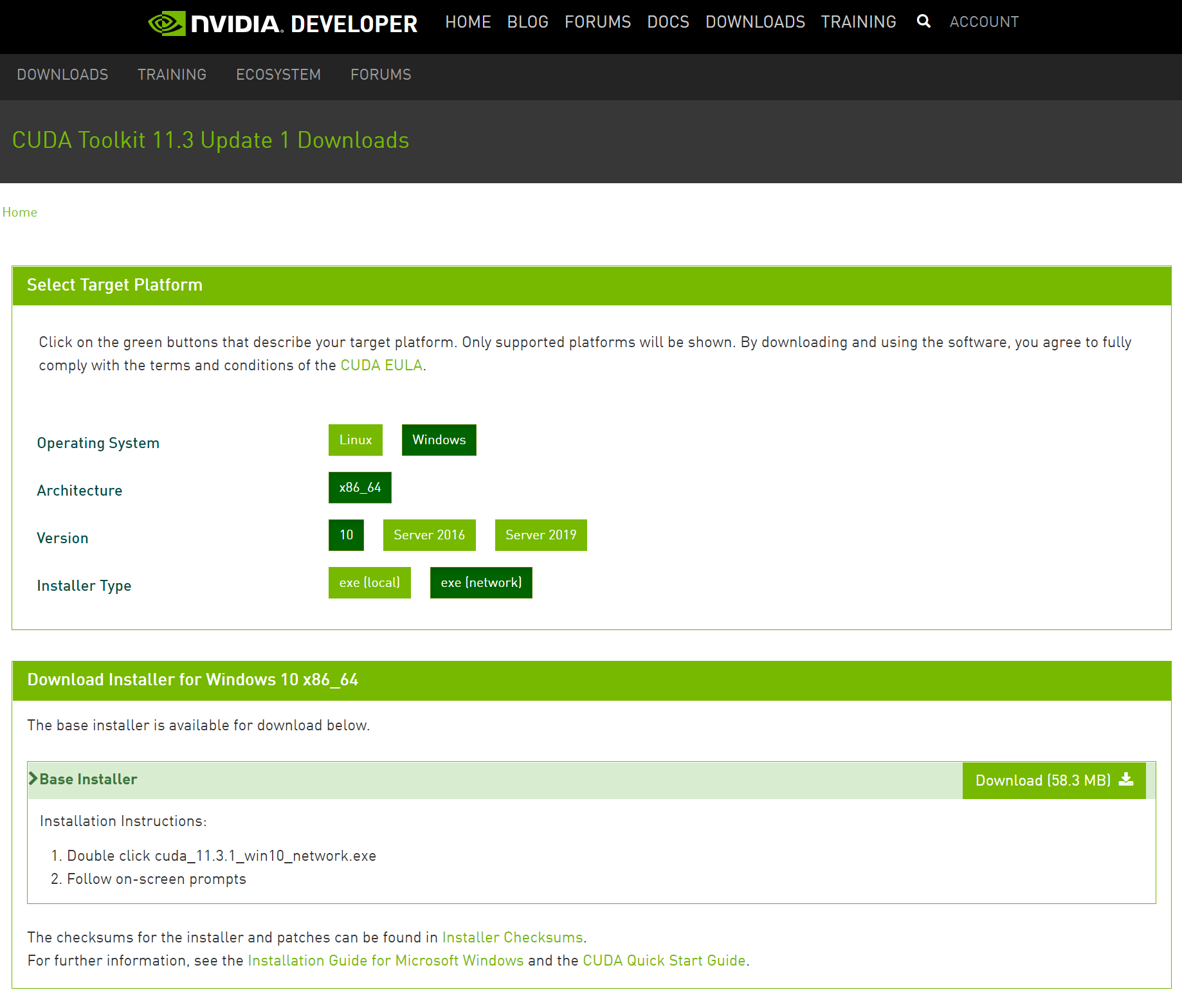 cuDNN은 Ndivia의 CUDA 전용 Deep learning Neural Network 라이브러리이다. 아래에서 다운받을 수 있다.