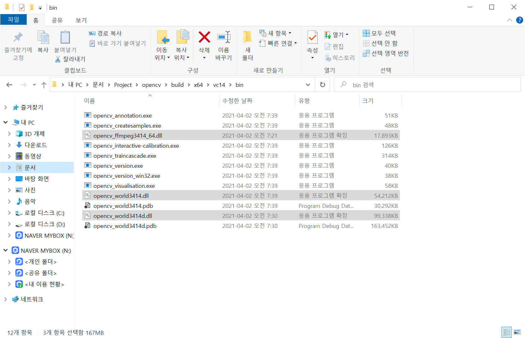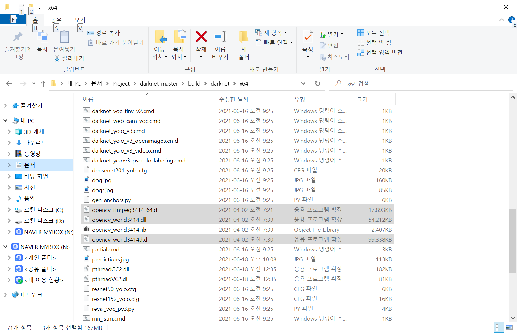 그리고 마지막으로 OpenCV 폴더에서 아래 라이브러리들을 Darket의 해당 폴더로 복사해준다. 파일명 뒤 숫자는 버전에 따라 달라질 수 있다.