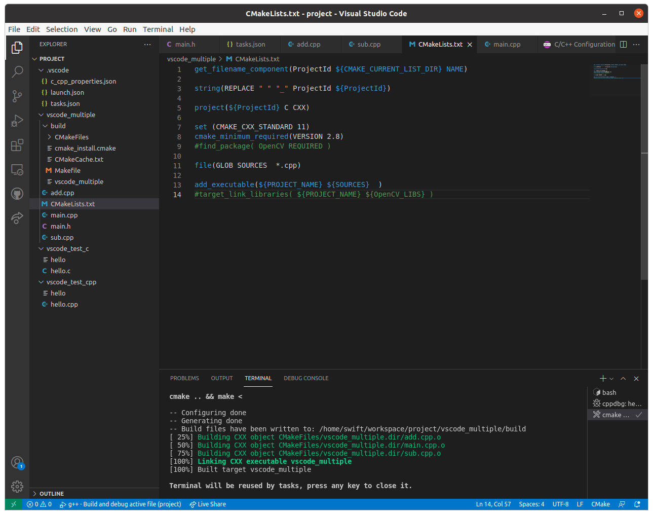 | Ubuntu 20.04에서 CMake Toolkit을 이용하여 프로젝트 빌드와 디버깅하기 (0) | 2021.08.16 |