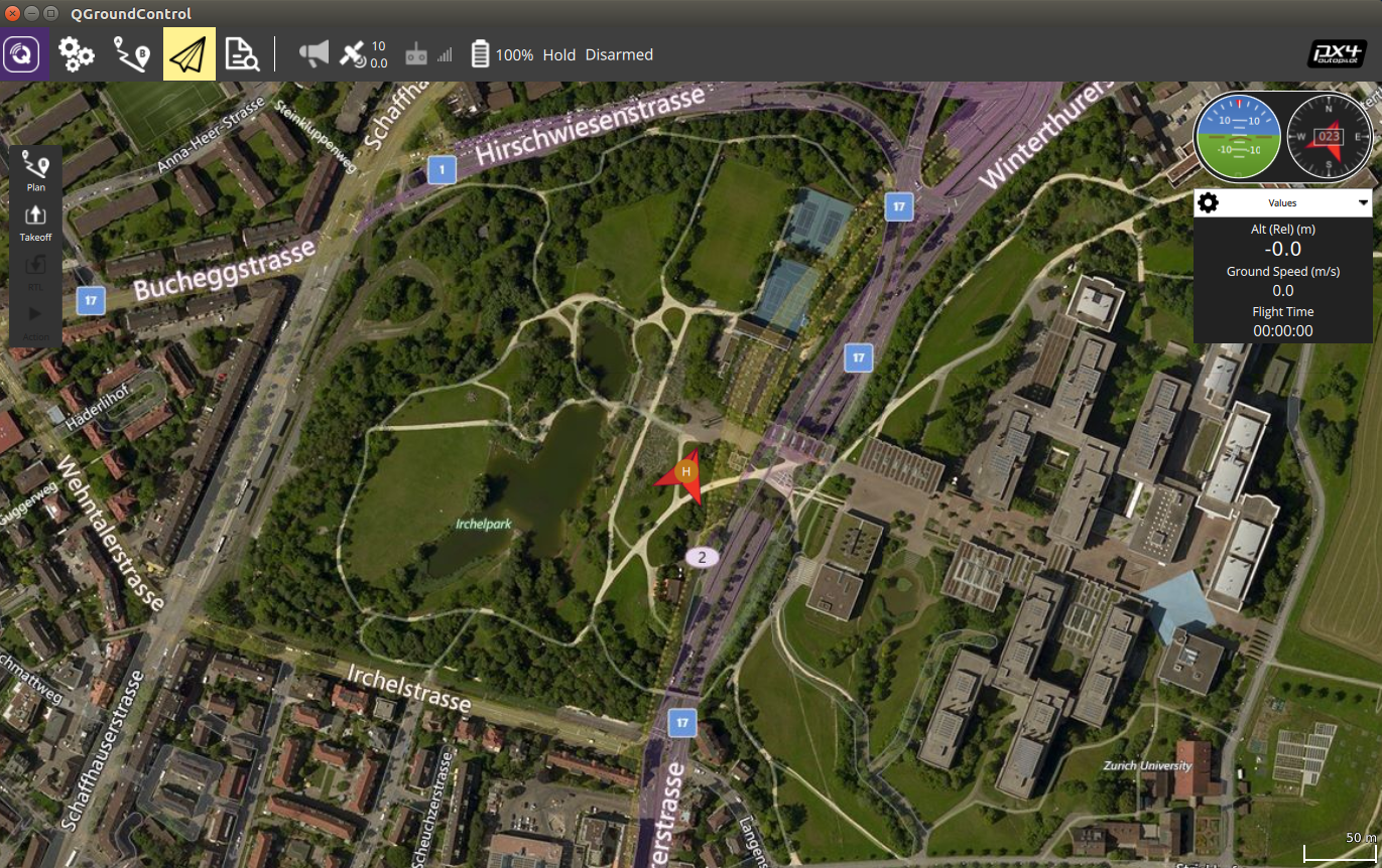 정상적으로 로딩되면 아래와 같은 지도와 함께 현재의 위치가 표시된다. SITL에서 디폴트 위치는 취리히 대학 인근으로 표시가 되는 것 같다.