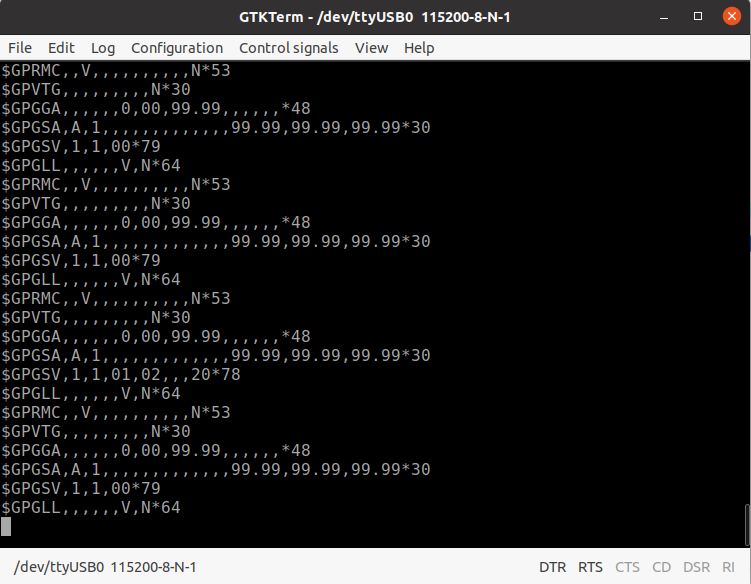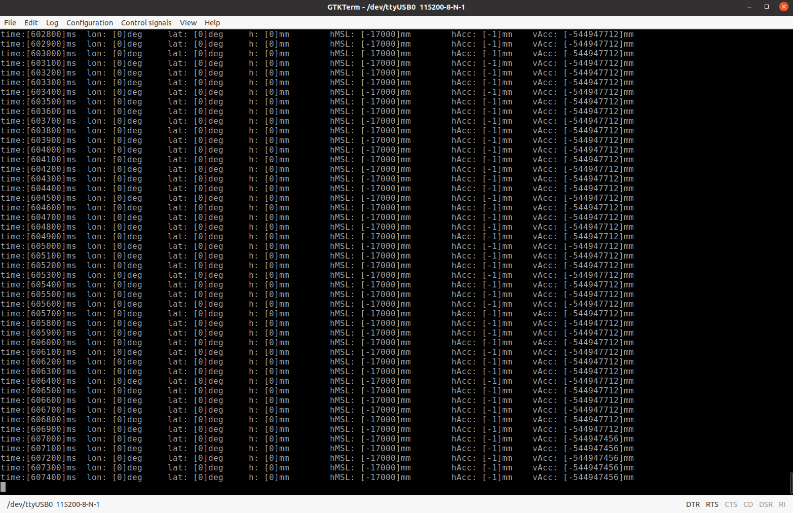 - 수신된 GPS 데이터는 바로 UART6으로 출력하여 터미널에서 확인