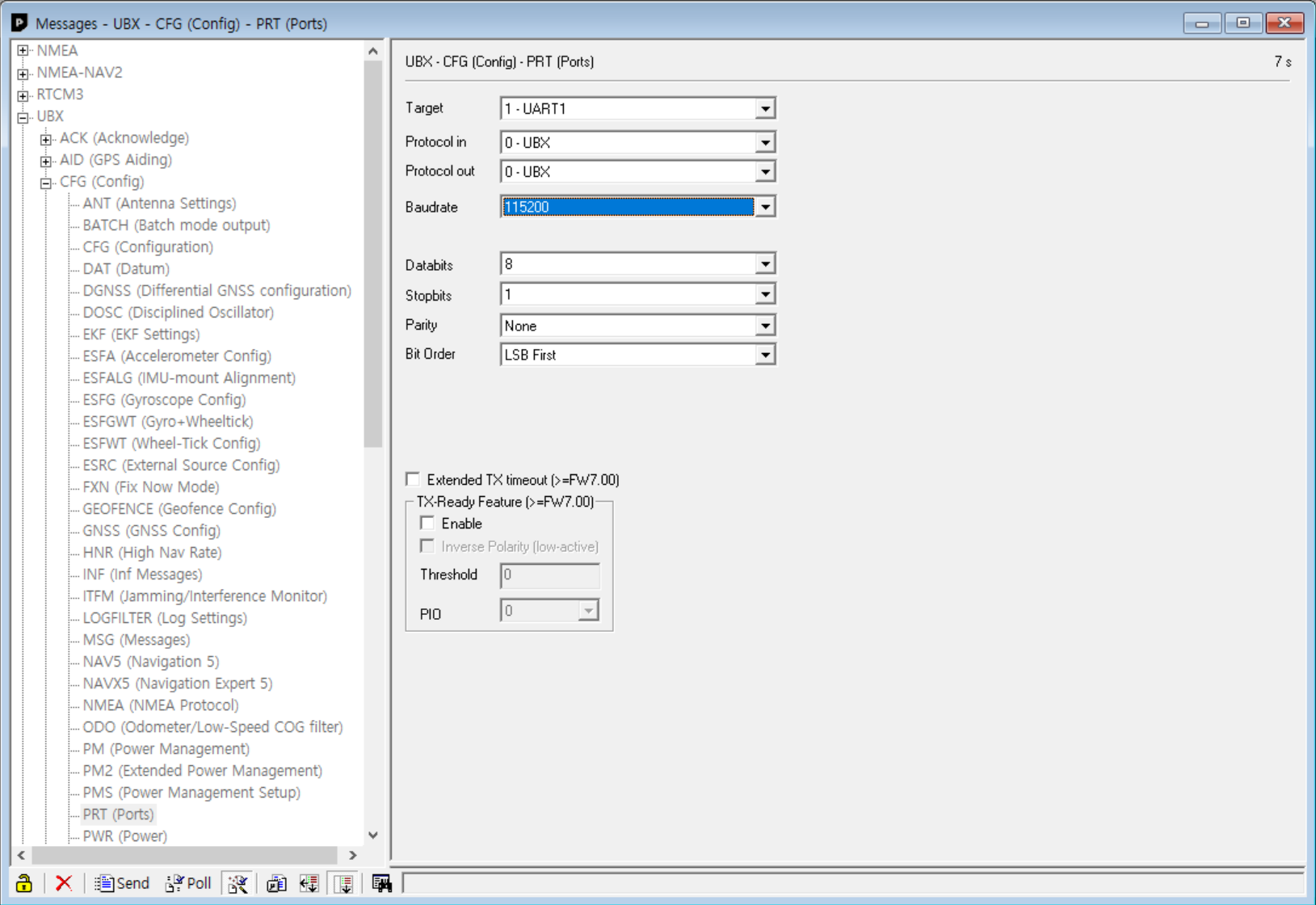 U-blox M8N은 기본적으로 9600bps NMEA 방식으로 GPS데이터를 수신하지만 UBX 포멧으로 변경하고 좀 더 빠른 주기로 보내기 위해 u-center 프로그램을 이용하여 설정을 변경한다.