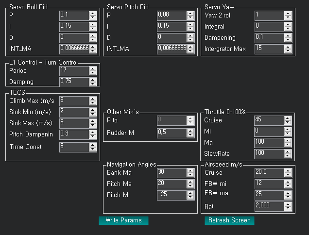 - QLoiter에서 Pitch 방향이 반대로 되어 있었음(조종기에서 Elevation 타를 반대로 수정하고 서보 출력을 맞추어줌
